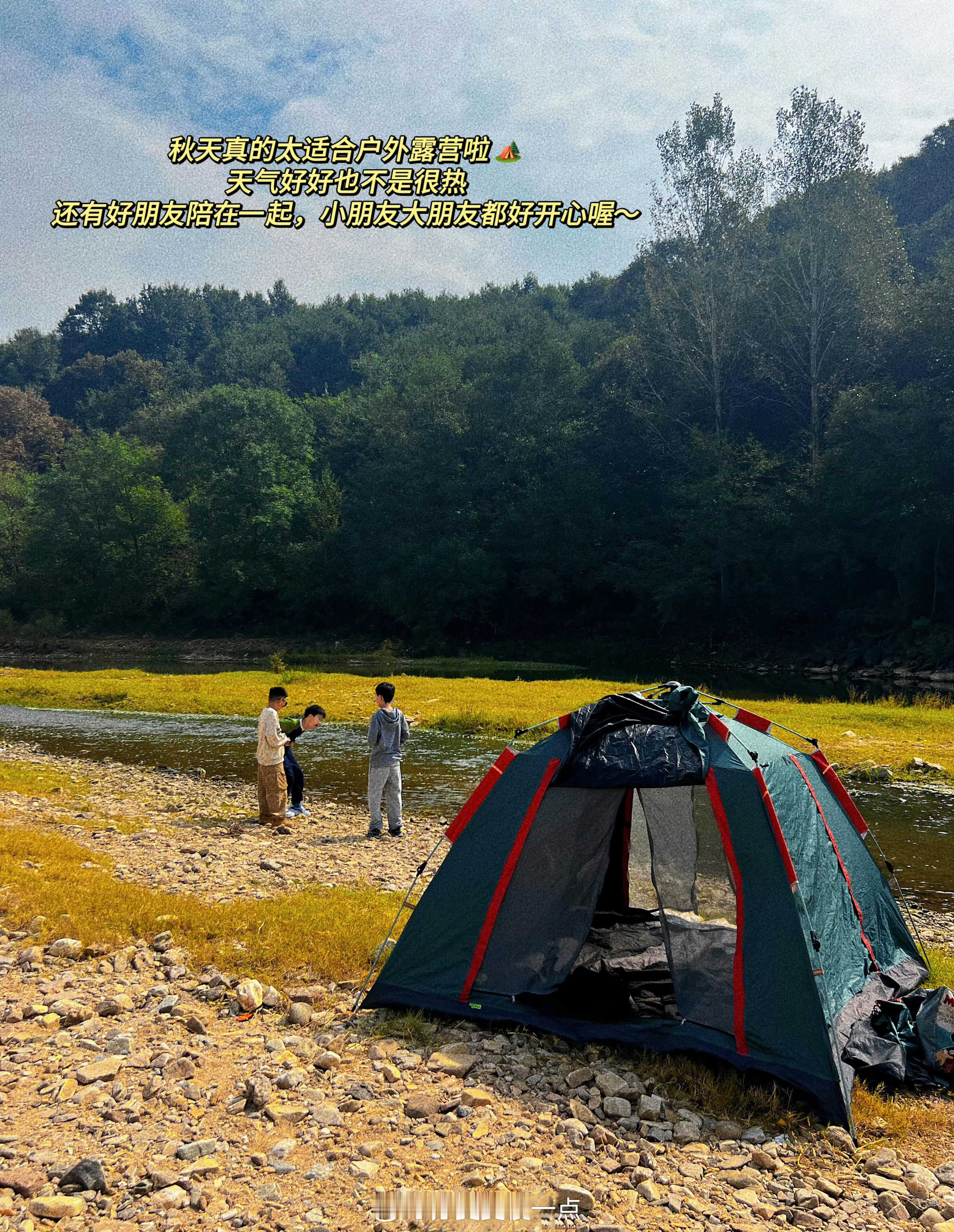 人真的离不开大自然啊~户外一旦开始,很轻易就会爱上🥰这周末久违的晴天+高温(近期之最),和朋友几家带孩子们去山里露营。刚搭完帐篷孩子们就跑去捞鱼𓆜打水漂啦,一到户外就各种活跃起来,这也是越来越爱带他们去户外的原因😏山里的光线对眼睛无比友好,对带娃的家长更加友好hhh,基本不用管他们嘻嘻嘻✌🏻平时一直看电子屏幕的眼睛,需要看看大视野的山线、树影。风吹过来的声音也让人放松,像一种天然的白噪音。孩子们在一起疯跑着玩,大人们也是欢声笑语品尝烧烤,真的是好放松呀~话题从工作到孩子再到生活中的各种小事…在户外,交谈似乎也更轻松了,阳光照在身上暖洋洋的感觉,胜过各种复杂疗愈☀️喜欢阳光的人才知道住这里有多爽