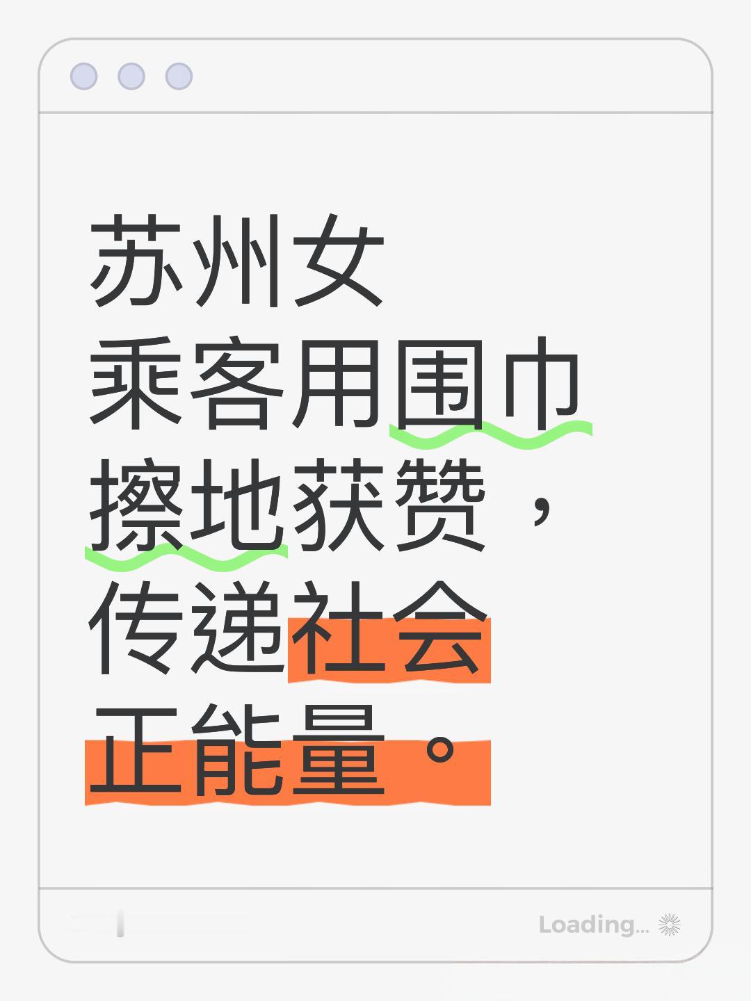 12月7日,全网寻找的用围巾擦地的苏州女乘客终于找到了,她的暖心举动感动了无数网友。 近日,一则关于苏州女乘客用围巾擦地铁地板的视频在网络上传播开来,引发了广泛关注。视频中,一名女乘客不慎将奶茶洒在地上,她随即用随身携带的围巾细心擦拭,最终将地面恢复原貌。这一行为不仅得到了周围乘客的认可,更获得了苏州地铁的官方点赞和奖励。顾女士在接受采访时谦虚地说:“我只是做了自己该做的事。”她表示希望通过自己的行动,鼓励更多人参与到维护公共环境的行列中来。苏州地铁方面也为这位热心乘客准备了一份特别的礼物,包括新围巾、文创大礼包和大食堂餐券,诚邀她联系地铁方。此事不仅展现了个人的社会责任感,也彰显了社会正能量。
