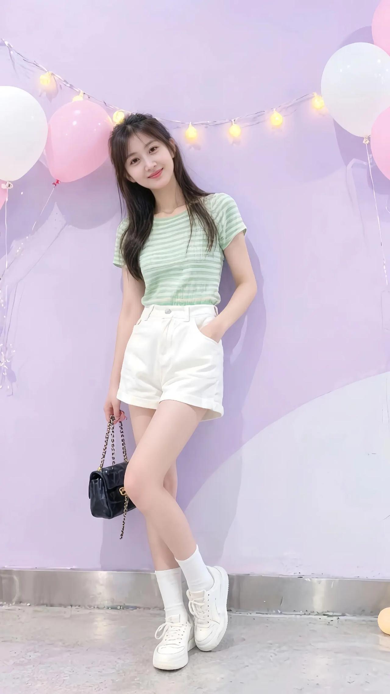 少女心满满的海边穿搭,白色短裙搭配蓝色帆布鞋,清新又可爱!🌊👗👟