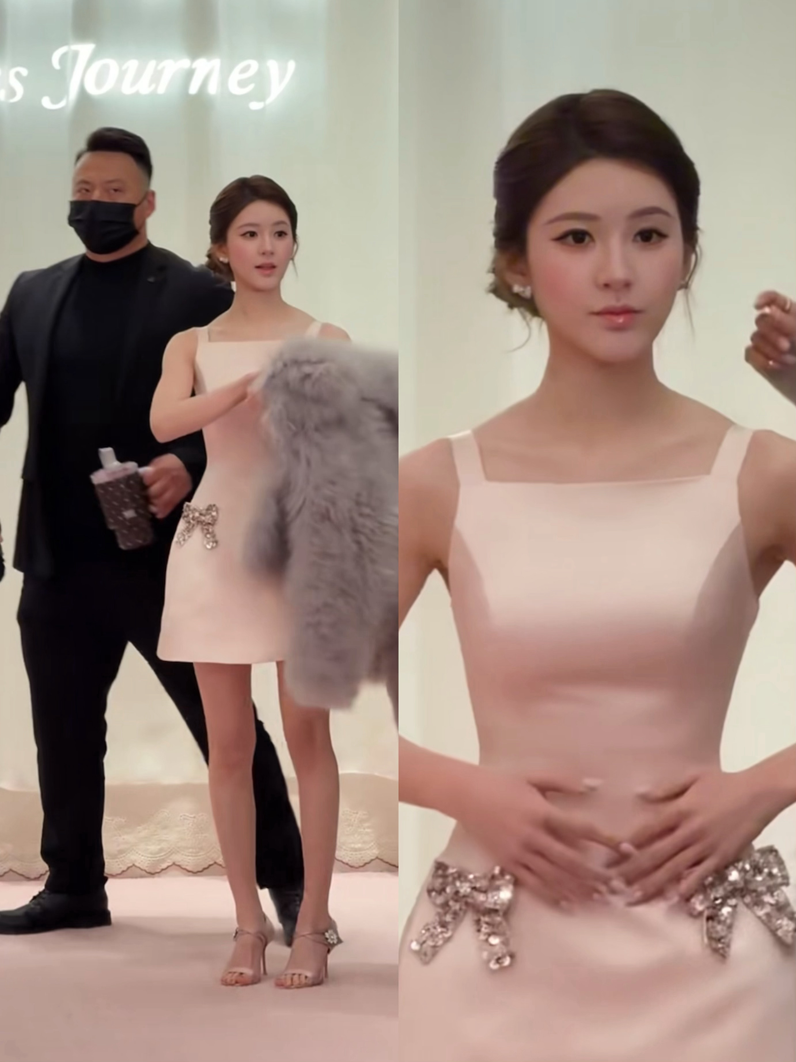 赵露思温柔粉色造型,甜美小仙女。赵露思12.7活动造型,粉色背带裙配毛绒外套,千金即视感,好贵气。