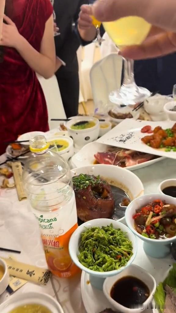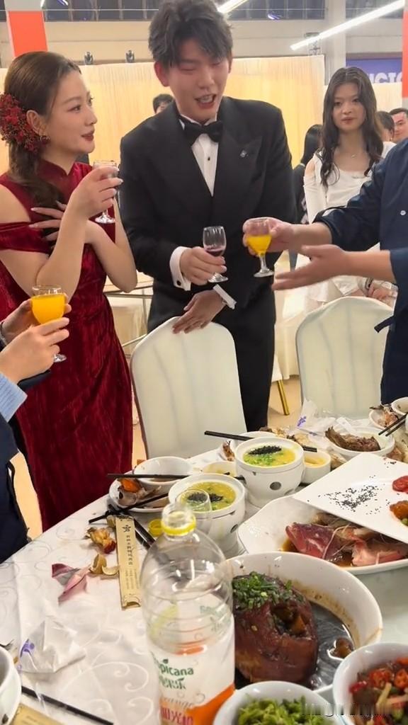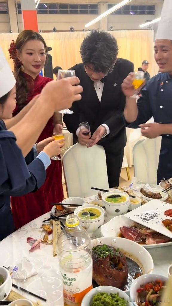 黄雅琼格局真的很大,敬酒的时候两个细节就能看出来 首先,她穿着敬酒服,看得出来今天很忙,但是她依然没有忘记厨师那一桌,还说虽然今天的菜我没有吃几个(太忙了),但是味道都很好,感谢大家的付出 很少有专门感谢厨师的,黄雅琼和刘雨辰夫妇这一点不错 还有一点,两口子敬酒杯子都放的很低,双手扶着,真的是给足了厨师们面子 感觉这一个厨师团队以后有的吹了,奥运冠军都说我做的菜不错,好吃[赞],善良的黄雅琼就是在给他们打广告[呲牙]