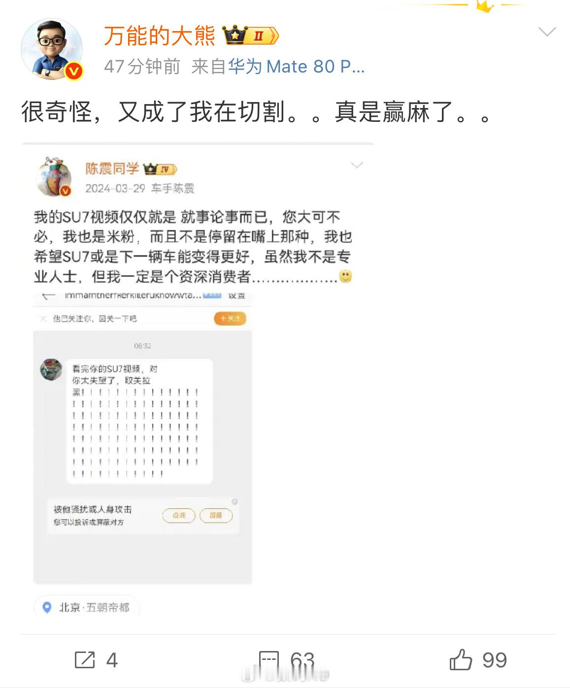 进一步升级,网友发现陈震的账号官方已经禁止关注了