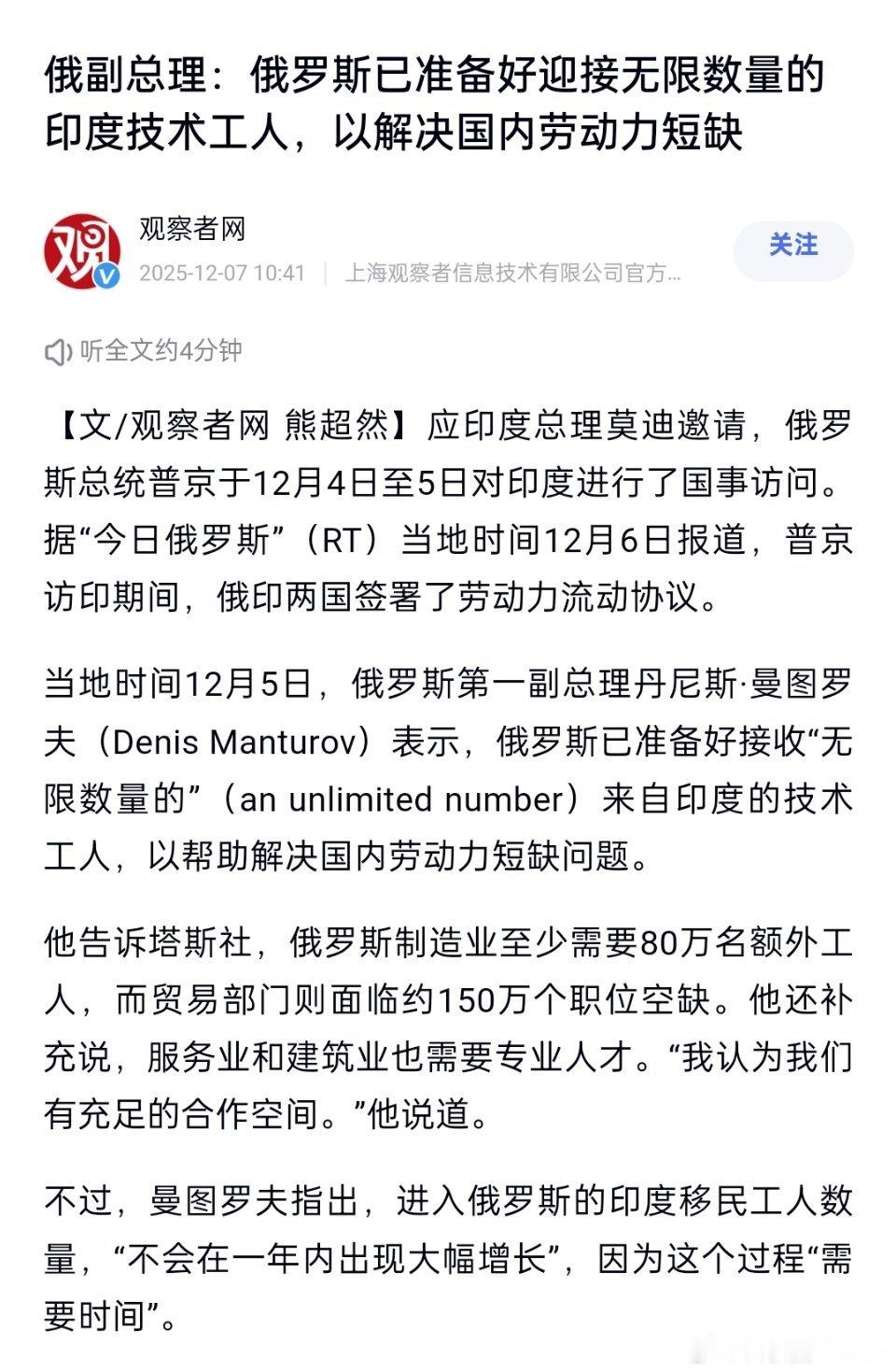 俄罗斯准备接纳无限数量的印度工人很奇怪,印度工人最近被欧美国家驱赶。但日本和俄罗斯突然很热衷引进印度人才。连以色列都坐不住了,大量引入印度人。印度人到底有什么魅力?这么受欢迎?