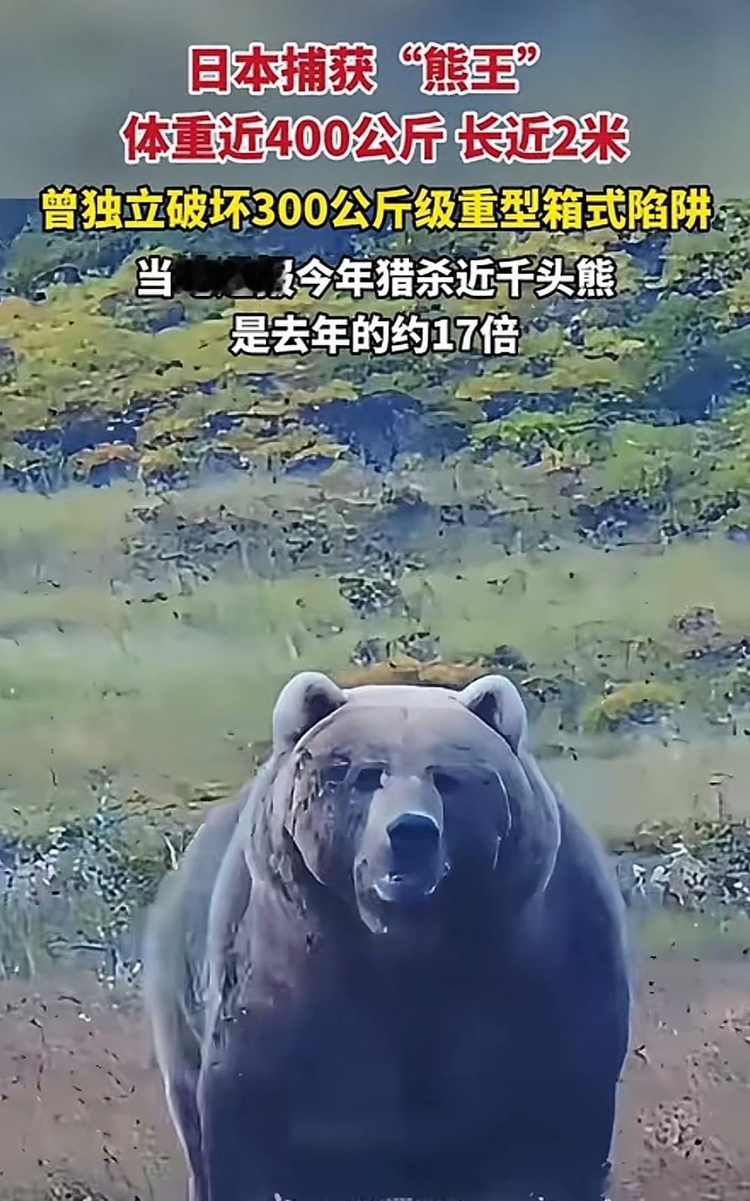 日本捕获400公斤熊王,体格长近2米,熊王伤人无数,2025年日本猎杀近千头熊,日本熊害泛滥体型庞大,是不是与生长的环境有关系。