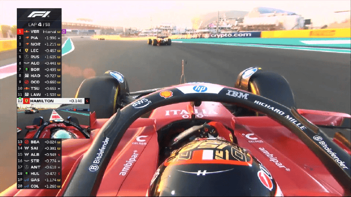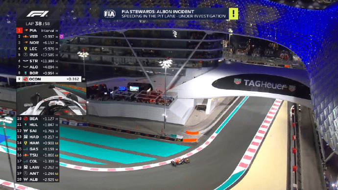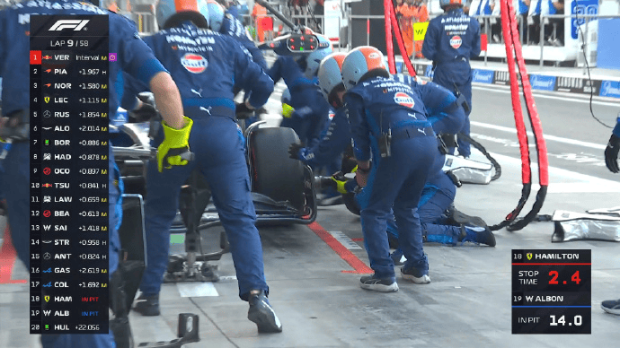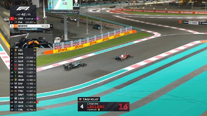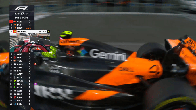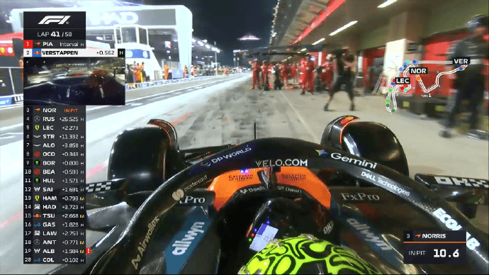 诺里斯和勒克莱尔同时完成进站,两人在拉塞尔身前出站;