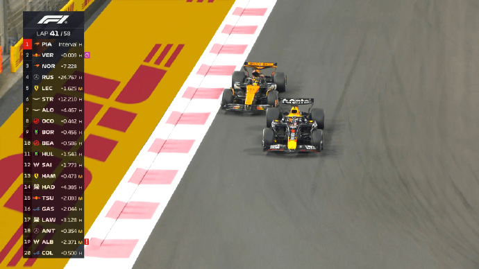 维斯塔潘超越皮亚斯特里来到领跑位置;
