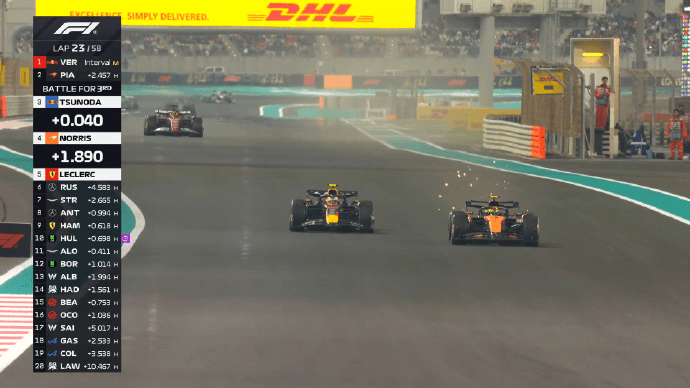 一个赛季下来3点印象深刻,红牛的二号车手太不靠谱、上一站安东内利给诺里斯的让车决定了年度冠军、潘子的统治力比前三个赛季提现的更强。