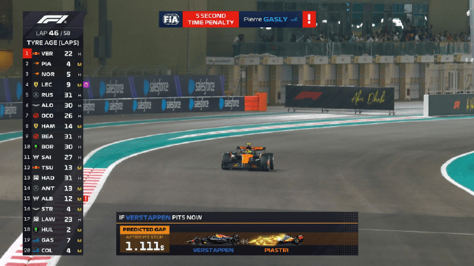 加斯利第四次违反赛道限制被罚5秒;
