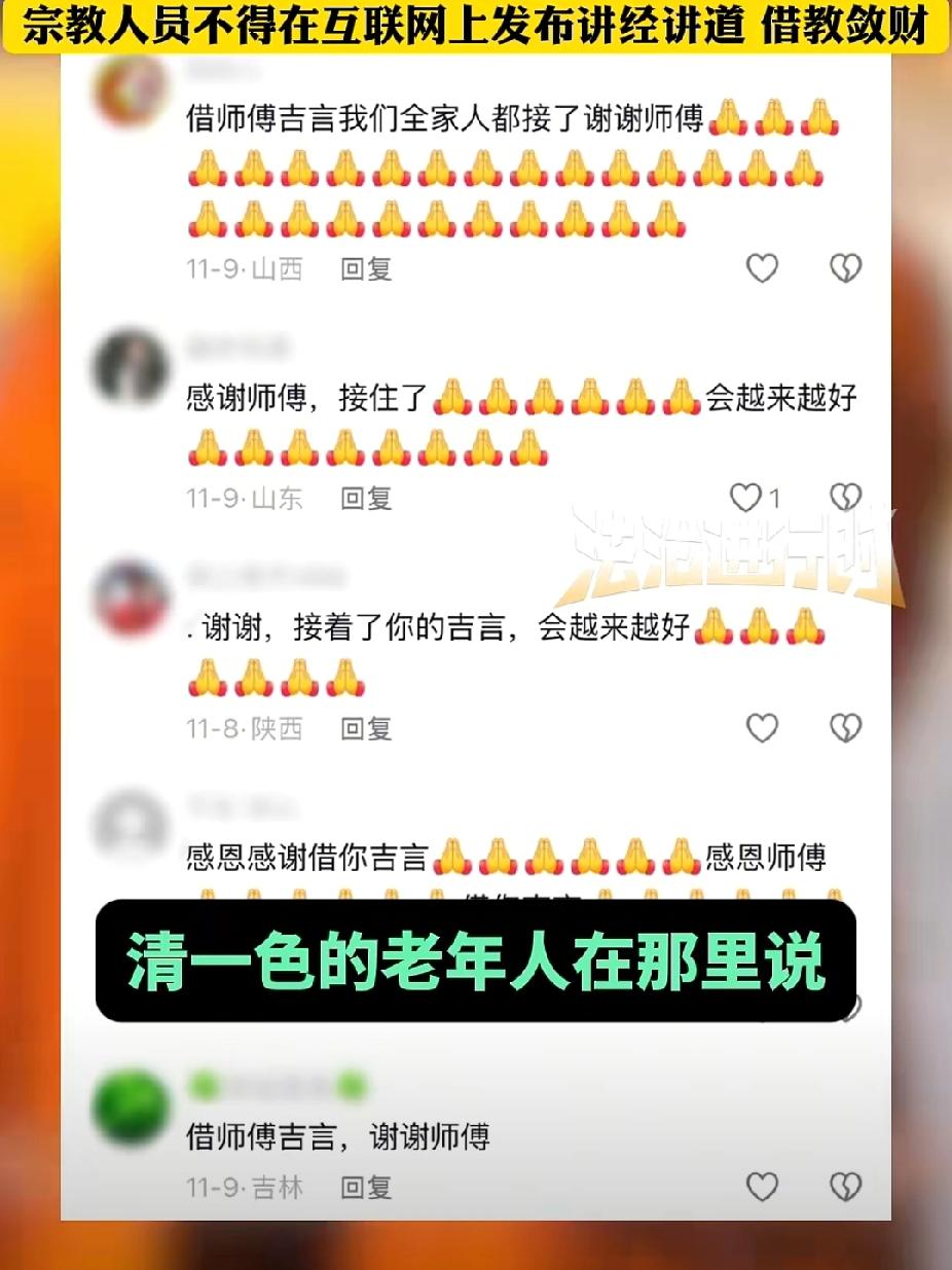 可怕!12月7日,一女子发布视频问:“你用父母手机刷过视频吗?”起因是女子发现日用品品牌越来越杂,于是拿妈妈的手机看刷视频,想要找到原因。 结果令女子非常吃惊!妈妈平时刷到的视频,都是一些假扮和尚或者道士的人的视频。 他们有的人穿着素衣,剃个光头。甚至只是在身上搭一块红布,就假扮道士。 而评论区清一色的老年人评论:“师父辛苦了,功德无量。” 然而事实上,真正的和尚或者道士是不被允许在第三方软件上进行直播的。那么这些自称和尚或者道士的人,平台是如何通过审核的呢? 对此,你怎么看呢?刷视频 和尚道士可以直播吗
