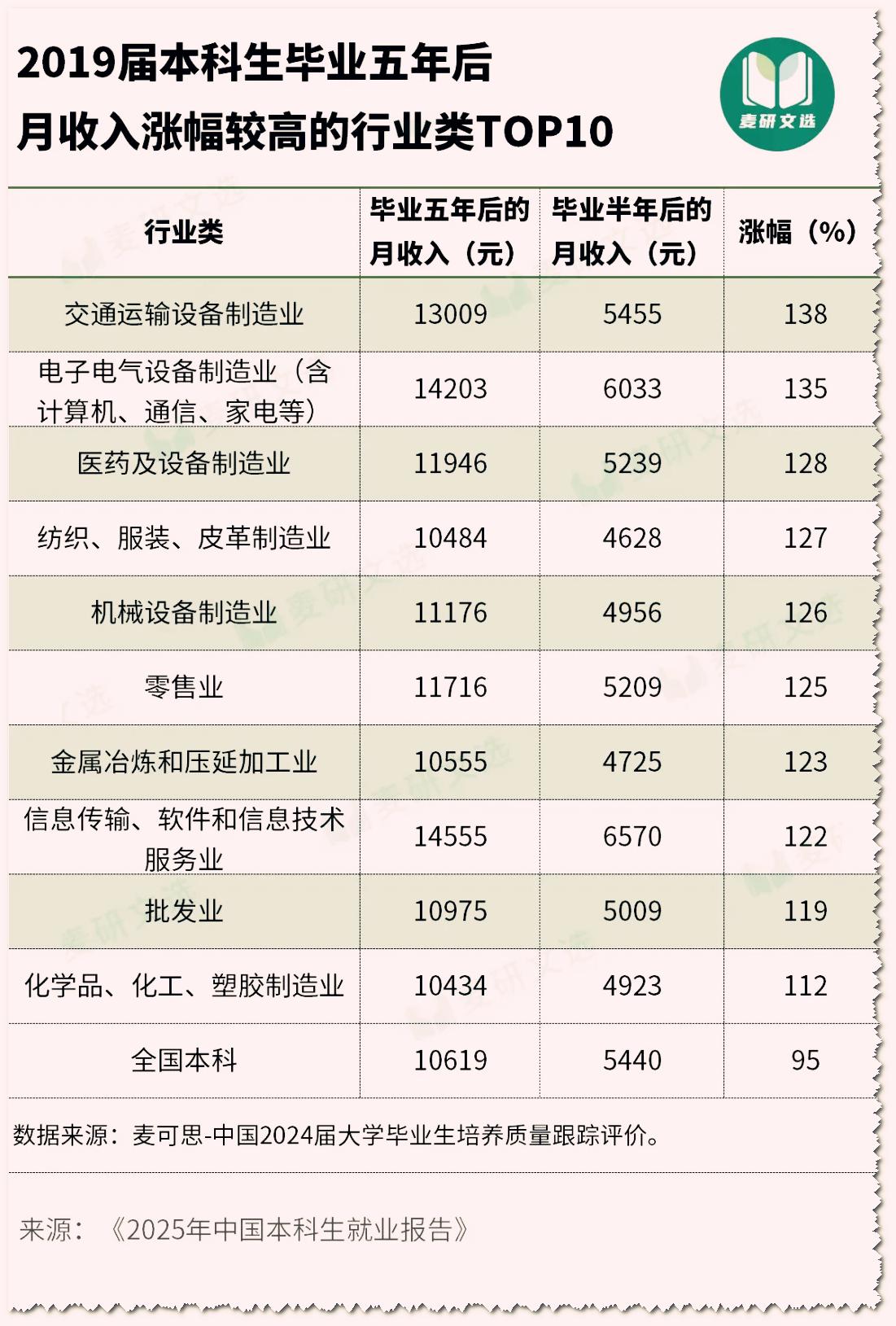 家人们!选对行业躺赢!毕业五年薪资涨幅138%,这些高技术行业太赚了!2019