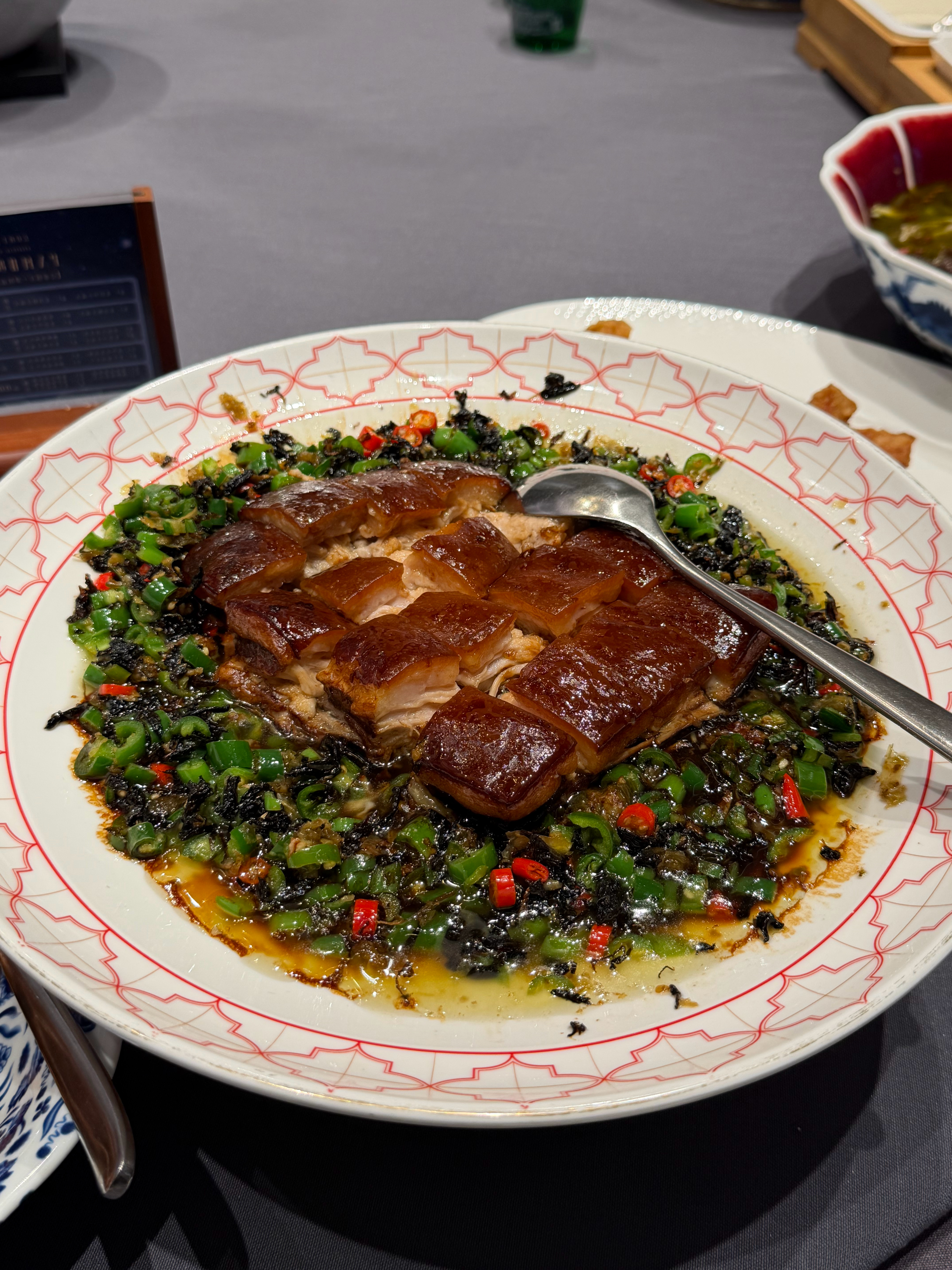 济南路过好几次,第一次有空安安定定吃顿晚饭,主办方安排吃了个融合湘菜的商务宴,没吃到九转大肠、葱烧海参、炒鸡、疙瘩汤