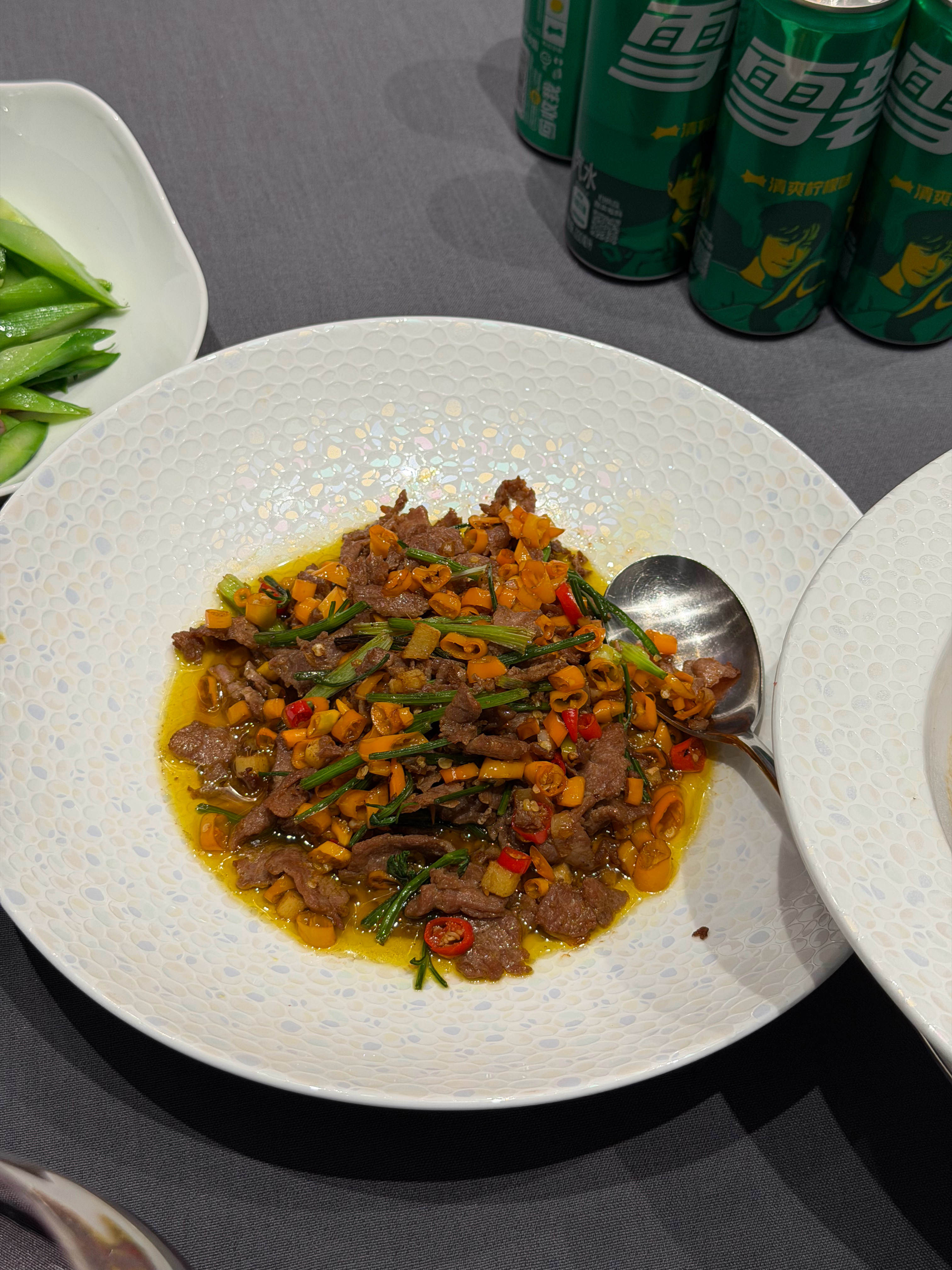 济南路过好几次,第一次有空安安定定吃顿晚饭,主办方安排吃了个融合湘菜的商务宴,没