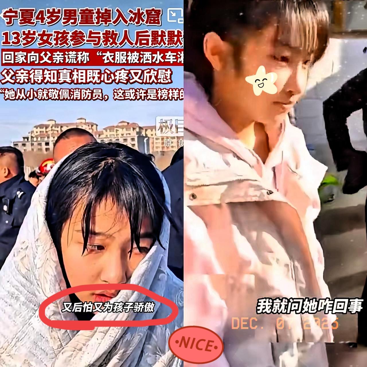 有时不得不信面相, 跳下冰窟救人的13岁女孩, 居然有着慈眉善目的菩萨长相,眉眼柔和却藏着侠义,冰窟救人的壮举比长相更让人动容。 4岁男童坠冰湖,大人们都不敢贸然上前,她一句“我身体轻”就冲了上去! 递管子时不慎落水,却死死攥着生的希望不松手,上岸后默默离开,还对爸爸撒谎说是洒水车淋湿了衣服。 这股纯粹的善良太珍贵,但也得承认,孩子贸然施救确实让人捏把汗! 真正的成长教育,从来不是让善良没底线,而是教会孩子带锋芒的善良——先保护好自己,再用智慧助人。 善良是底色,自保是底气,两者兼顾才是对孩子最好的指引。你平时会教孩子哪些实用的应急自保技巧呢? 最美少年李佳婷