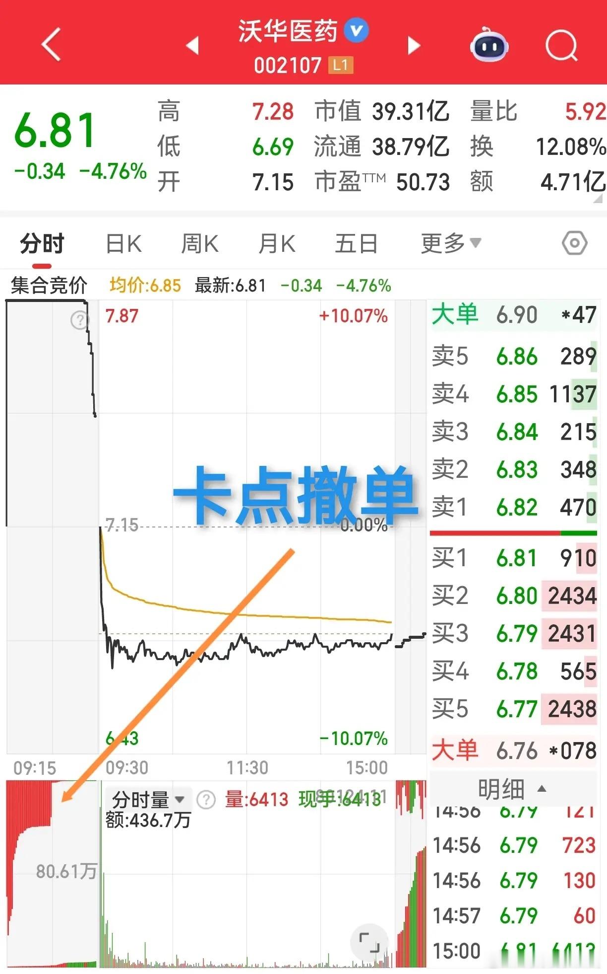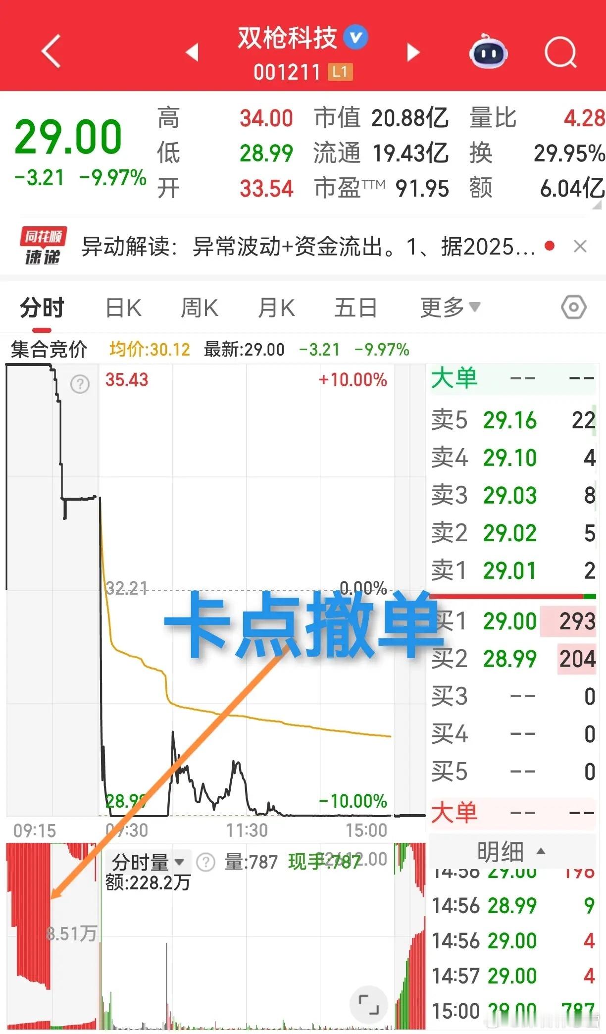 集合竞价卡点撤单=弱势预警?看这几个标的就懂了!双枪科技9:20秒撤大额买单,开盘直接跪;沃华医药撤单同样狠,楚环科技竞价一路跌划重点:竞价只反映当日情绪,别拿来猜后续走势!新资金进场可能救场,但投资要做大概率选择,才够稳!当然也有妖股例外:曾经有票天天卡点撤单,却天天涨停(好像是蓝黛科技?)不过这种骚操作,真的是百年难遇!