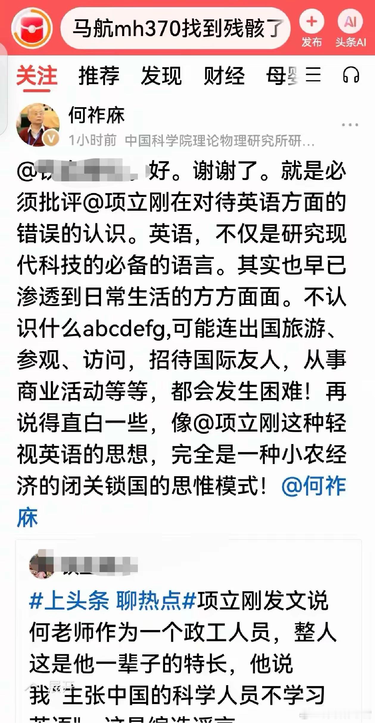 何老师,您还敢不服?针对何老师的持续反驳,我再亮明立场:1. 动辄给人贴“小农经济”“闭关锁国”标签,本质是不讲道理的“打棍子”行为。发展要靠实事求是、真抓实干,而非斗来斗去的标签化攻讦。2. 我并非反对学英语,而是反对全民强制高标准学英语的资源浪费。多数人毕生用不上英语,出国旅游、贸易也无需精深掌握;更遑论古汉语学者被迫耗费精力背单词,既阻碍人才选拔,又干扰专业研究。收起这套过时的指责手段,2025年了,该讲点真道理了!
