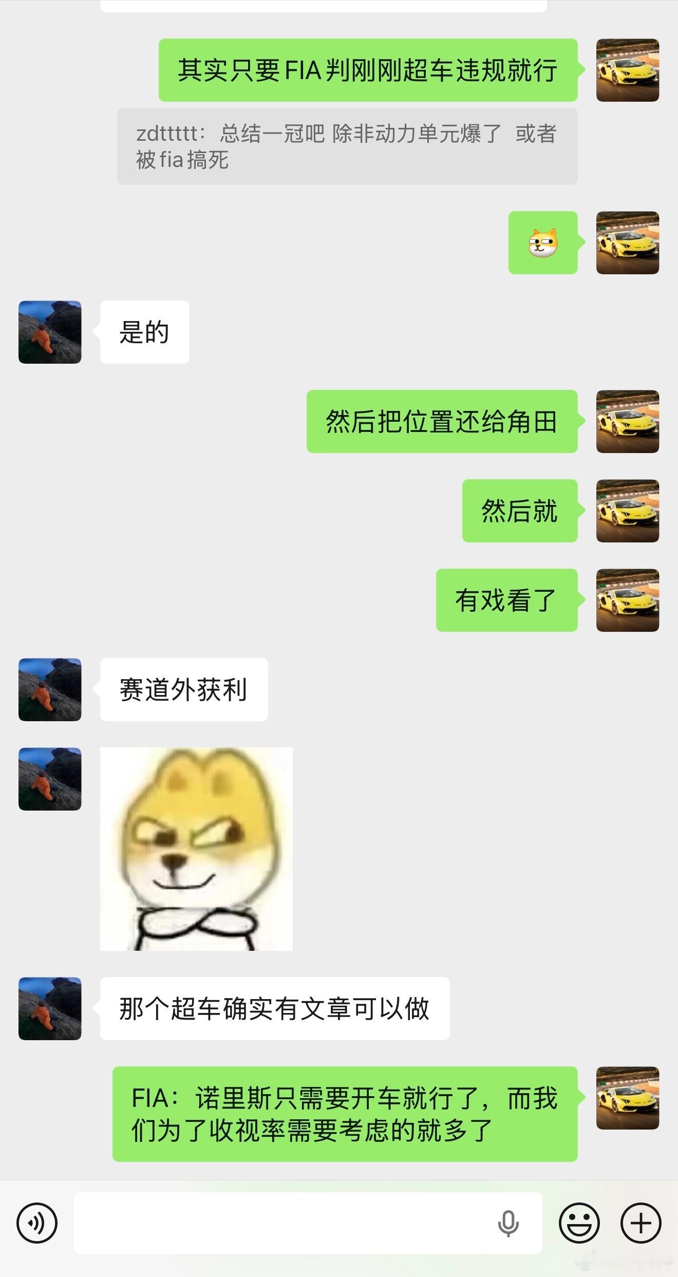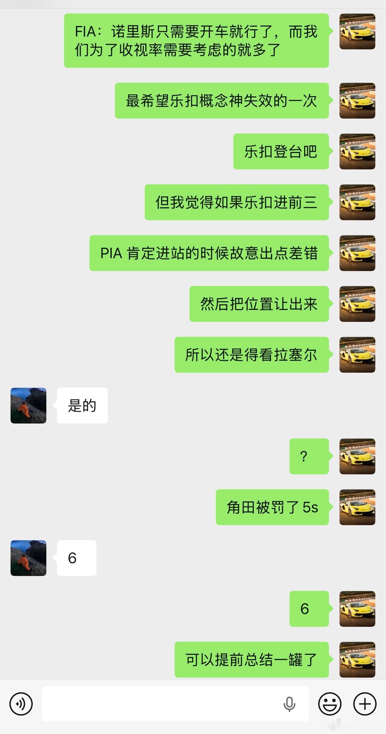 在群里开玩笑说FIA给诺里斯来个判罚就有戏看结果FIA转头给角田罚了5
