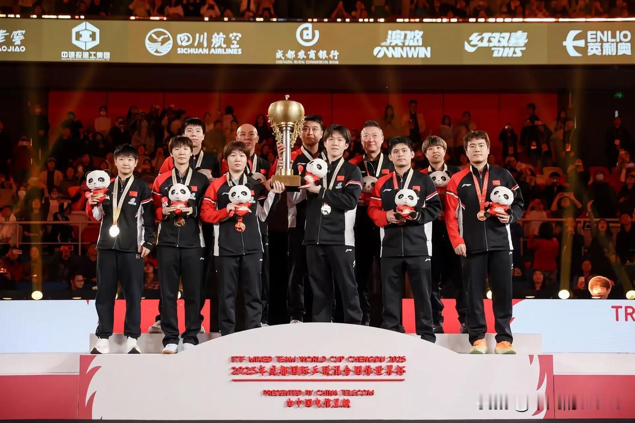 12月7日,王艺迪发文说:“感谢中国队的所有人,大家辛苦啦!” 王艺迪发了4张照片,3张是团体合照,1张是熊猫娃娃。 首先恭喜中国队以总积分8-1战胜强敌日本队,实现混合团体世界杯三连冠。 王楚钦、孙颖莎、王曼昱作为老将,每一场都发挥的不错,我完全不用担心他们。 蒯曼发挥出色,合照都是和王楚钦站在C位,她应该会成为重点培养对象。 林诗栋在决赛中,以积分2-1赢下张本智和,综合实力越来越强了,值得鼓励。只要他保持稳定,未来可期。 王曼玉带伤出战,她一直带着蒯曼打比赛,是个可靠的姐姐。 以上8人中,只有徐瑛彬发挥较差,难怪王皓会黑脸,马琳则笑开了花。 对于蒯曼站在合照C位,孙颖莎靠边站,大家有什么想说的?