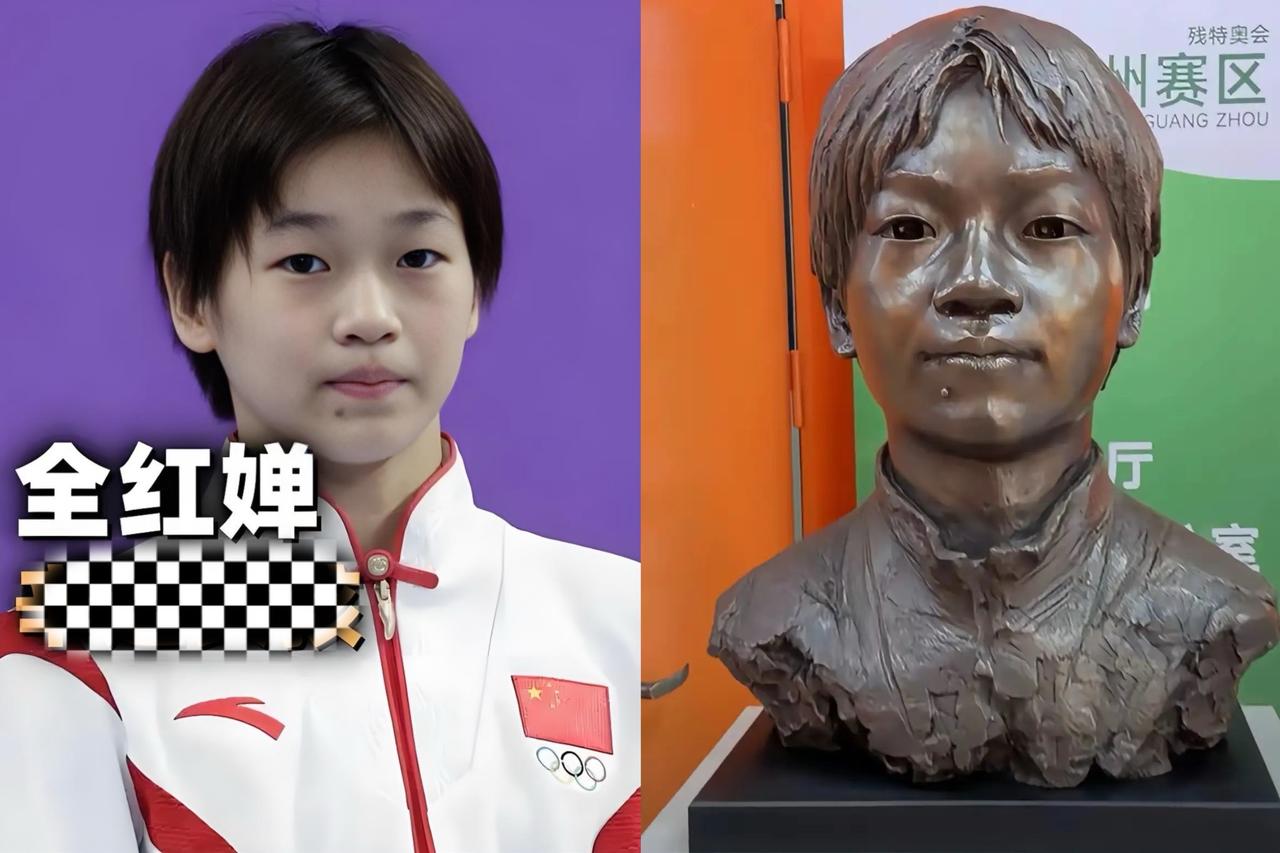 陈若琳怎么也没想到, 就同为跳水运动员的陈芋汐也没有想到, 那个长相普通、看着像小学生的全红婵,居然有了自己的青铜雕像! 18岁的全红婵,7岁才开始学跳水,教练当初只觉得她能吃苦、有天赋,谁能料到,14岁她就站上奥运赛场,一战成名,紧接着又以风驰电掣之势拿下奥运会、世锦赛、世界杯金牌大满贯,成了中国奥运史上最年轻的三金得主。 虽说雕像雕得不太像,但这是她用实力挣来的荣誉。全红婵的成功,不只是天赋,更是日复一日的刻苦训练。她用行动告诉大家,年龄小、起点低都不是事儿,努力就能创造奇迹。这样的00后,值得佩服!