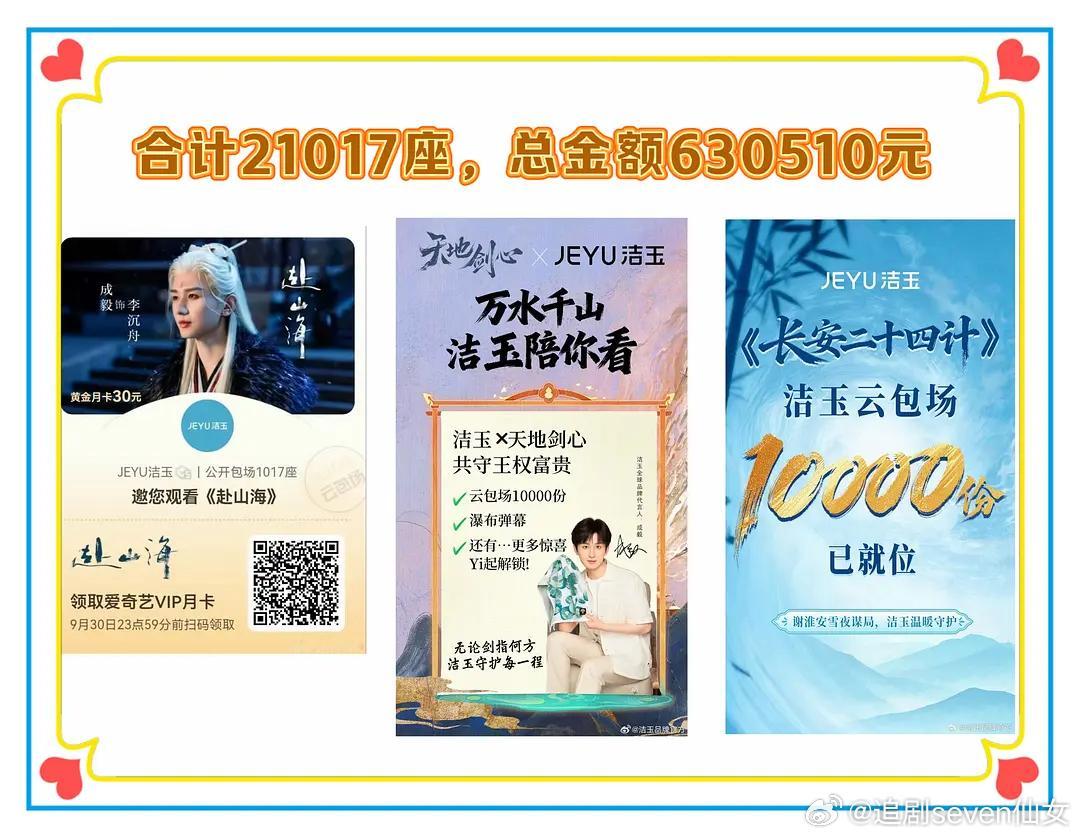 成毅代言品牌方真的特别好,一出手就是好几千上万的云包场。连续三个月三部剧,云包场广告联名支持代言人的,都是自发追着给代言人撑腰,ee的商业价值给品牌方带来了真金白银,品牌对代言人也是各种骄傲。放眼这个内娱,成毅的品牌方特别好特别大方