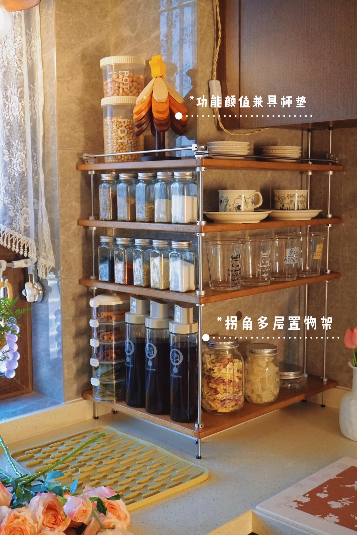 【多层置物架】利用拐角空间,收纳瓶瓶罐罐,还是实木➕颜色金属(光轴)