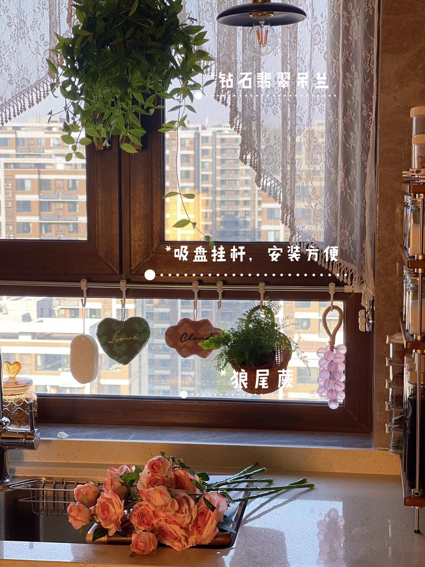 【法式风珍珠纱帘】正好风格基调就靠它了,遮住丑窗户