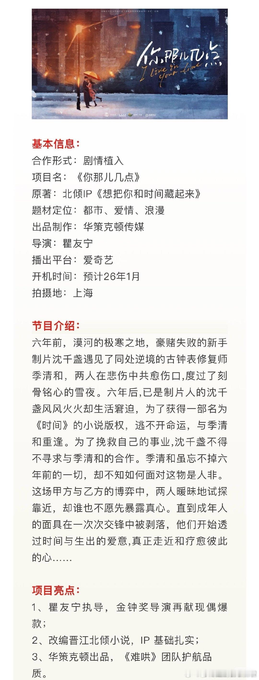 这个饼终于要来了,🥝现偶《你那儿几点》1月开机主演:章若楠、王安宇导演:瞿友宁《难哄》《我可能不会爱你》《恶作剧之吻》