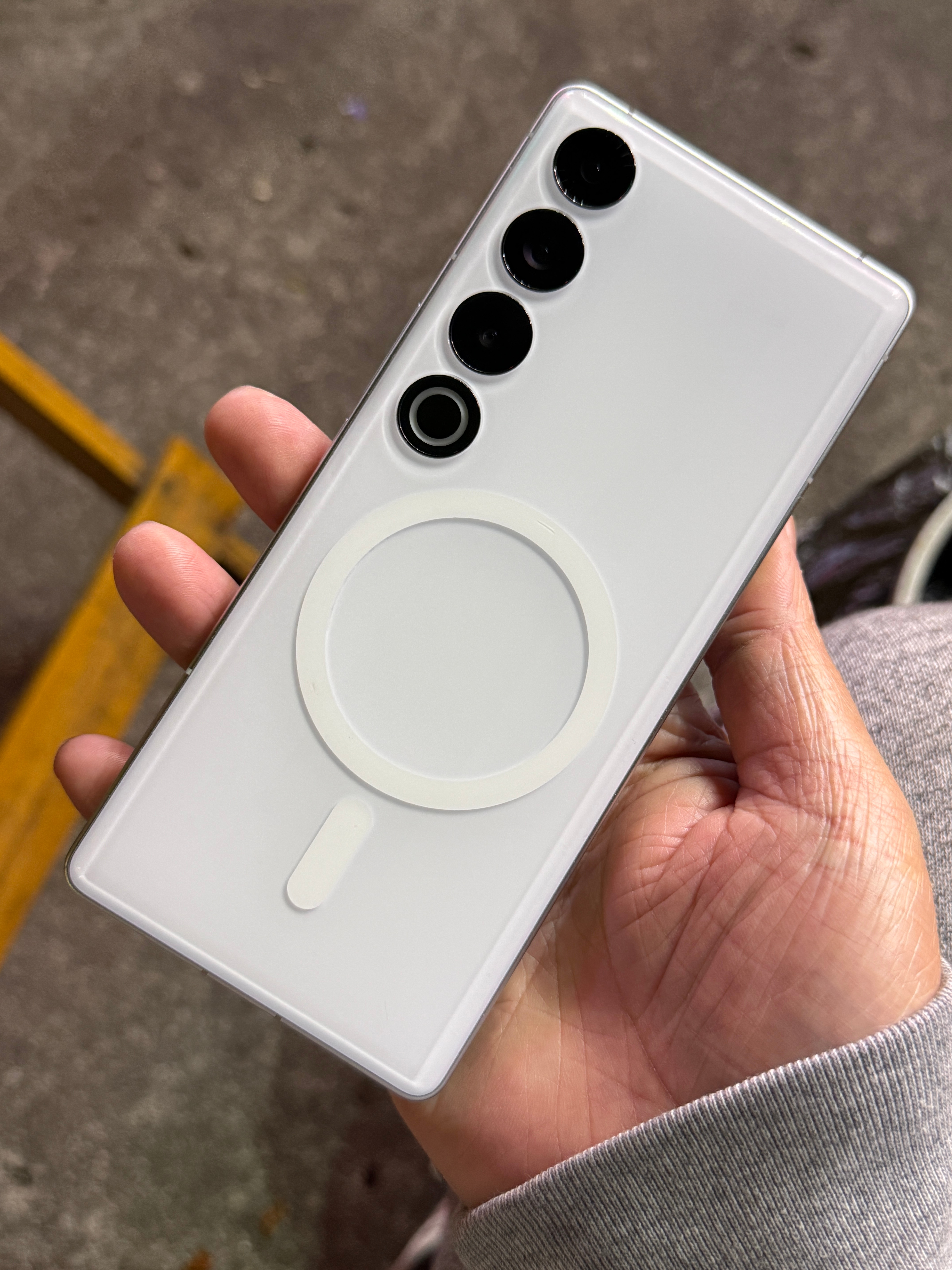 魅族21Pro 平嵌磁贴就是这样子了。2mm 厚度,边缘弧度我们做到2mm 厚度