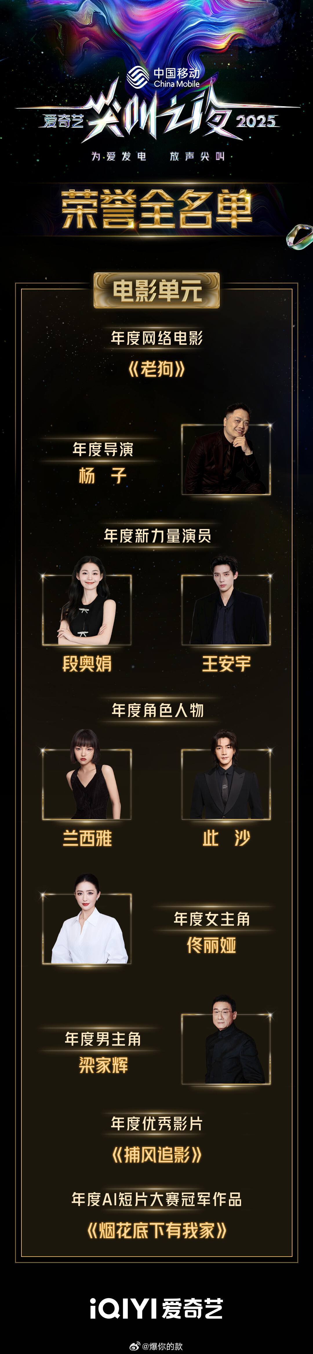 2025爱奇艺尖叫之夜荣誉全名单发布~2025尖叫之夜荣誉全名单 发布!综艺丨电影丨海外丨戏剧丨尖叫丨致敬6大单元万众瞩目,63项荣誉重磅揭晓