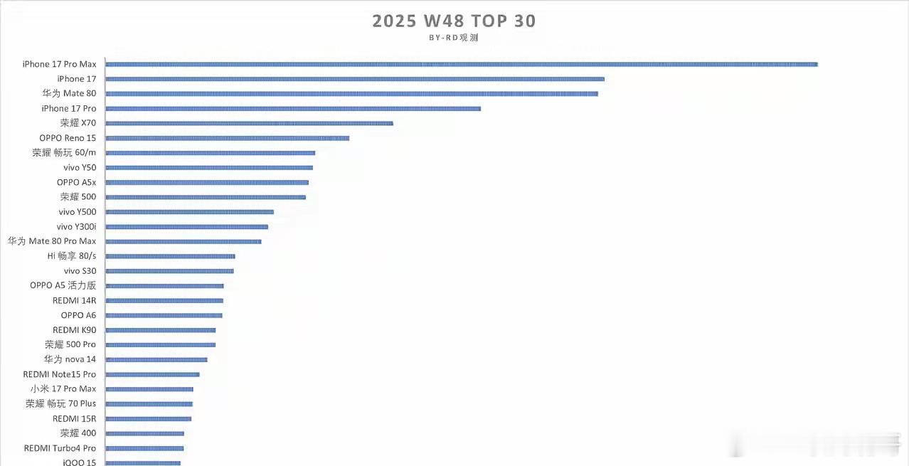 Mate80标准版用了3天时间卖进了前3名,而Mate80Pro Max在严重缺货的情况下3天卖进了前15名,这个成绩含金量还是有的,至于很多一向对华子存在敌意的群体,它们却抓住Mate卖得不如iPhone17系列,Mate80PM在货源充足的情况下,销量不会比Mate80标准版差的,所以目前的华子还是有很大束缚在身,那些人能笑的就赶紧笑,等一系列问题挨个解决后,它们后面能笑的概率和机会越来越少了。榜单里,还有一个机器是我一直夸的,那就是荣耀千元神机X70,可谓“不管风吹浪打,胜似闲庭信步”。不管友商们的新机如何迭代更新,它基本一直名列前茅。