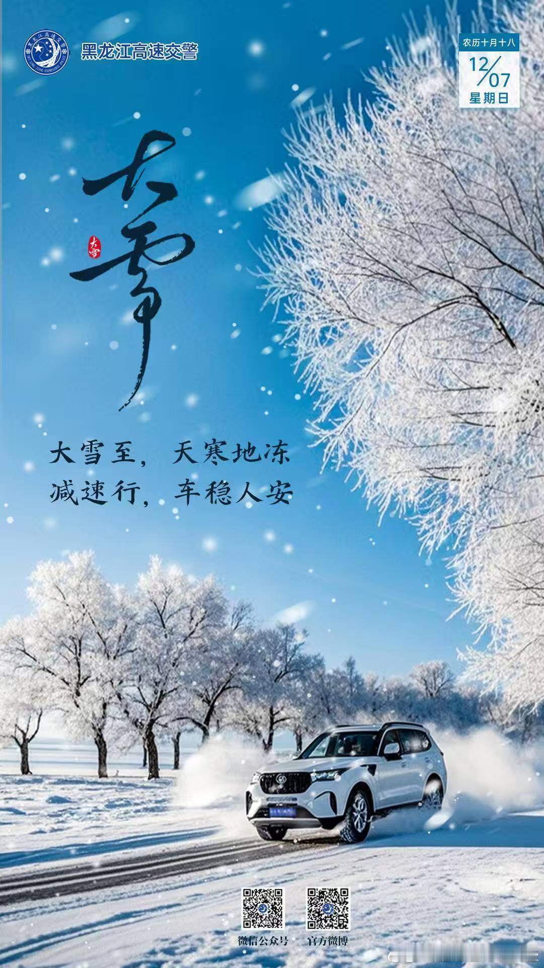 早安高小黑大雪至,天寒地冻。减速行,车稳人安。早安(