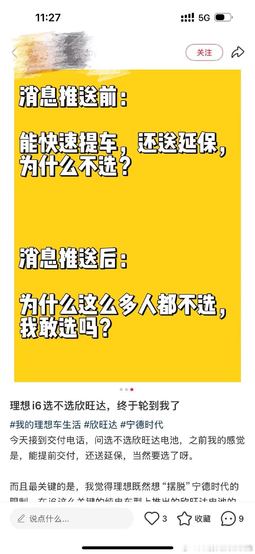最近“理想i6让消费者选电池”的事火了,网上说理想i6想要早提车,建议用户选欣旺达?不过现在新能源汽车竞争这么激烈,理想这种头部车企也要降本。真的可以理解,毕竟是首次亏损,企业不能拿利润开玩笑,活下去才是真道理,要对理想的选择题,抱以宽容心态。 (
