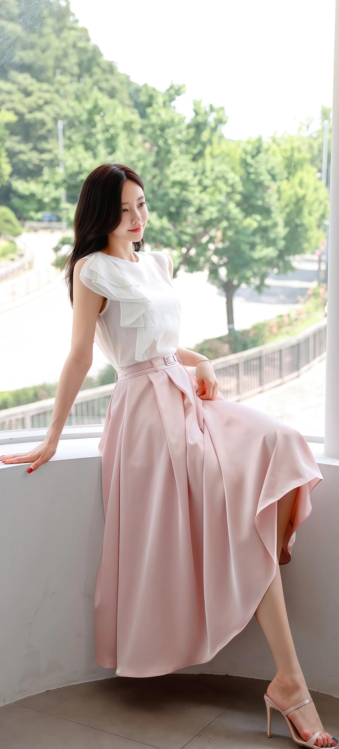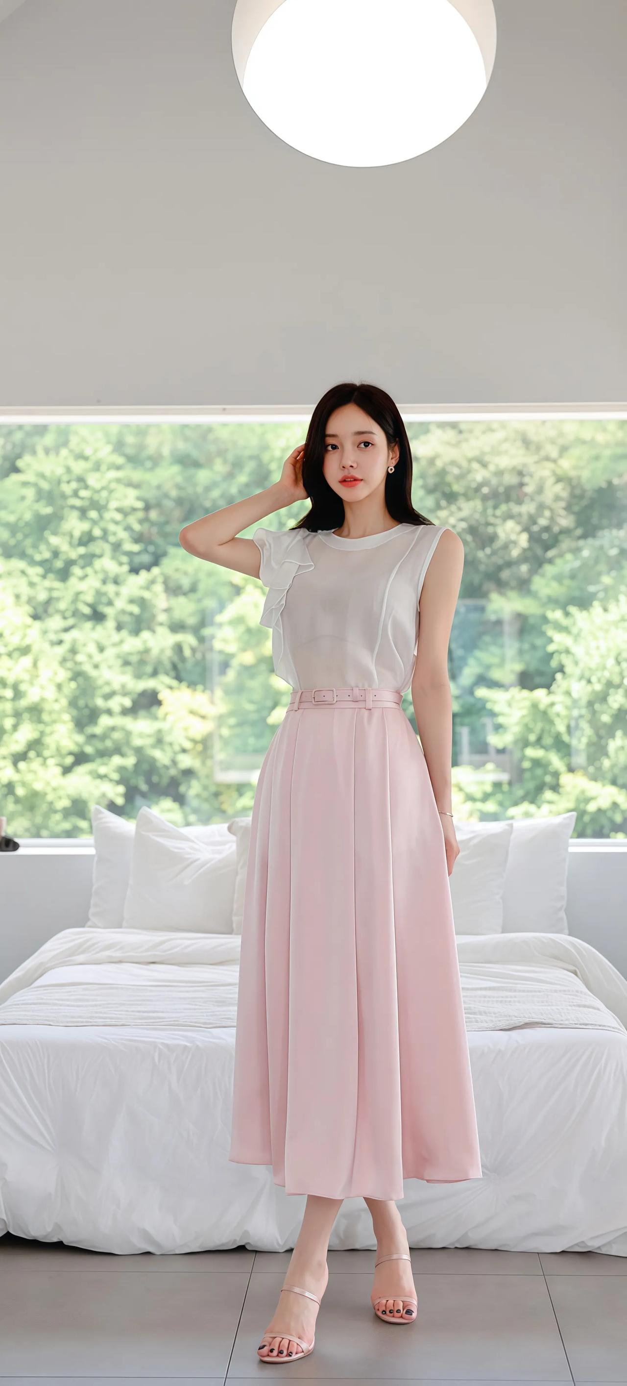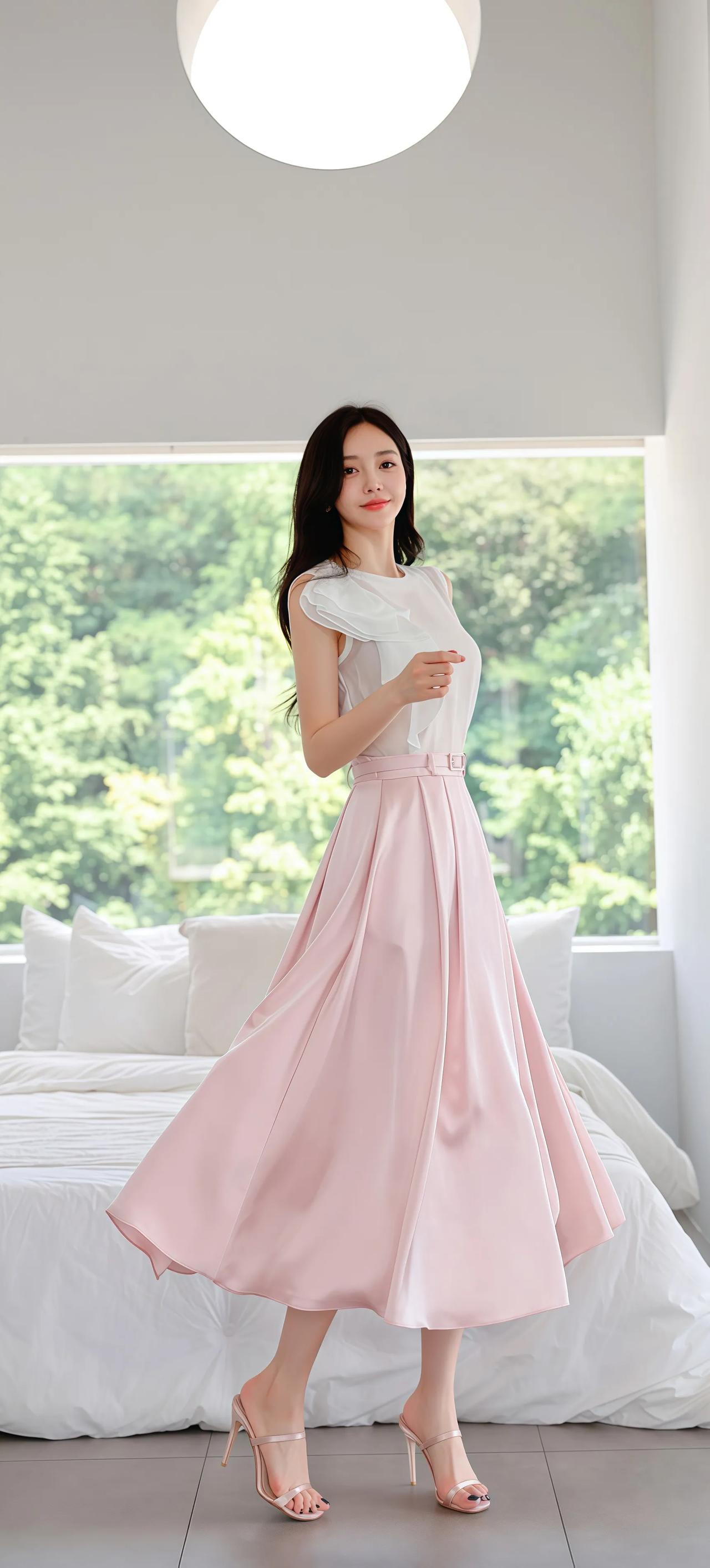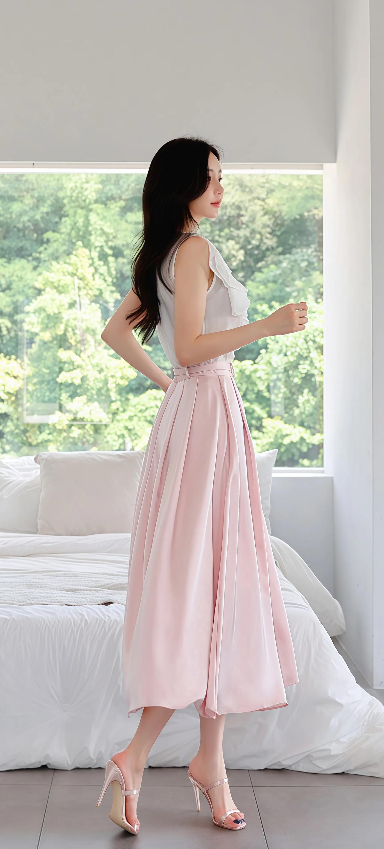 清新夏日穿搭,粉色裙摆飘逸,简约优雅,尽显女性魅力!🌸💃