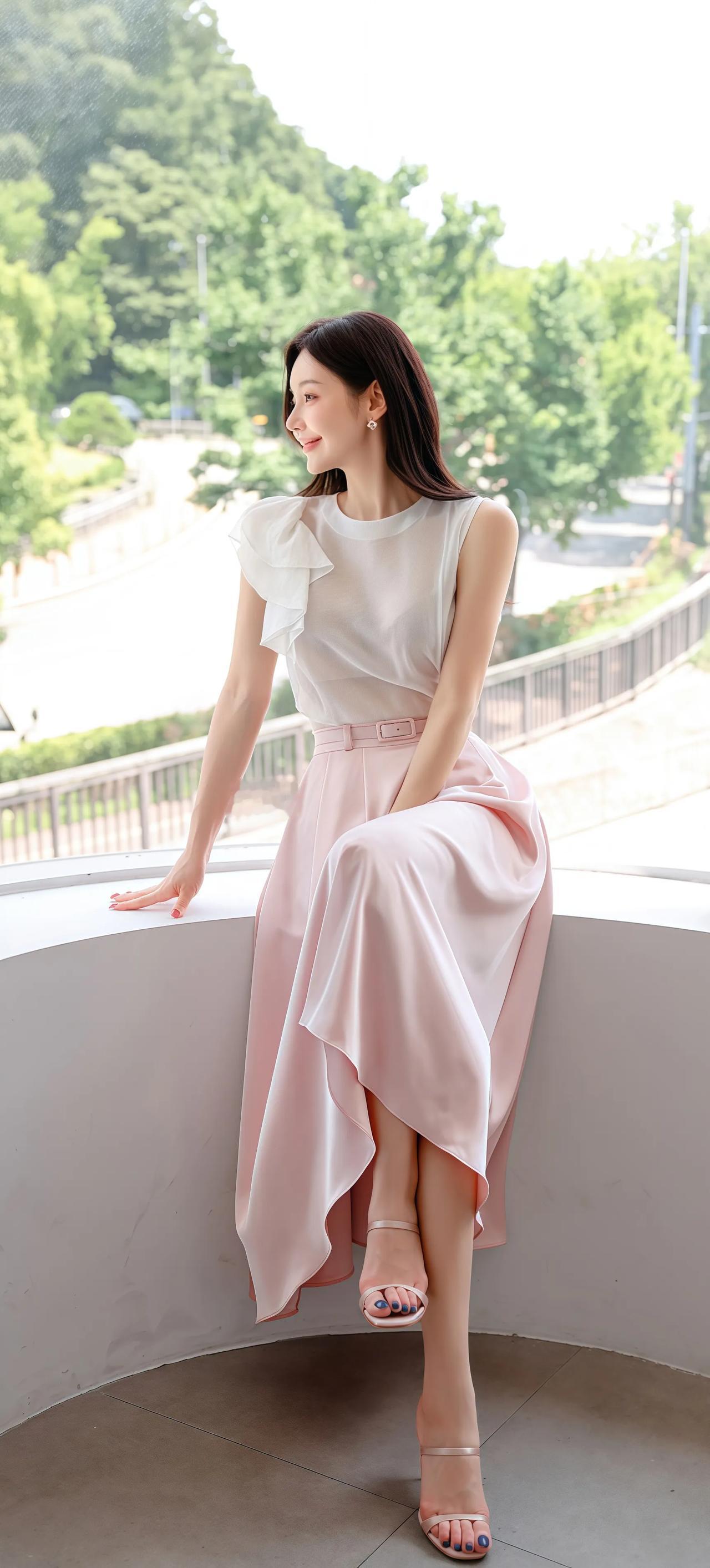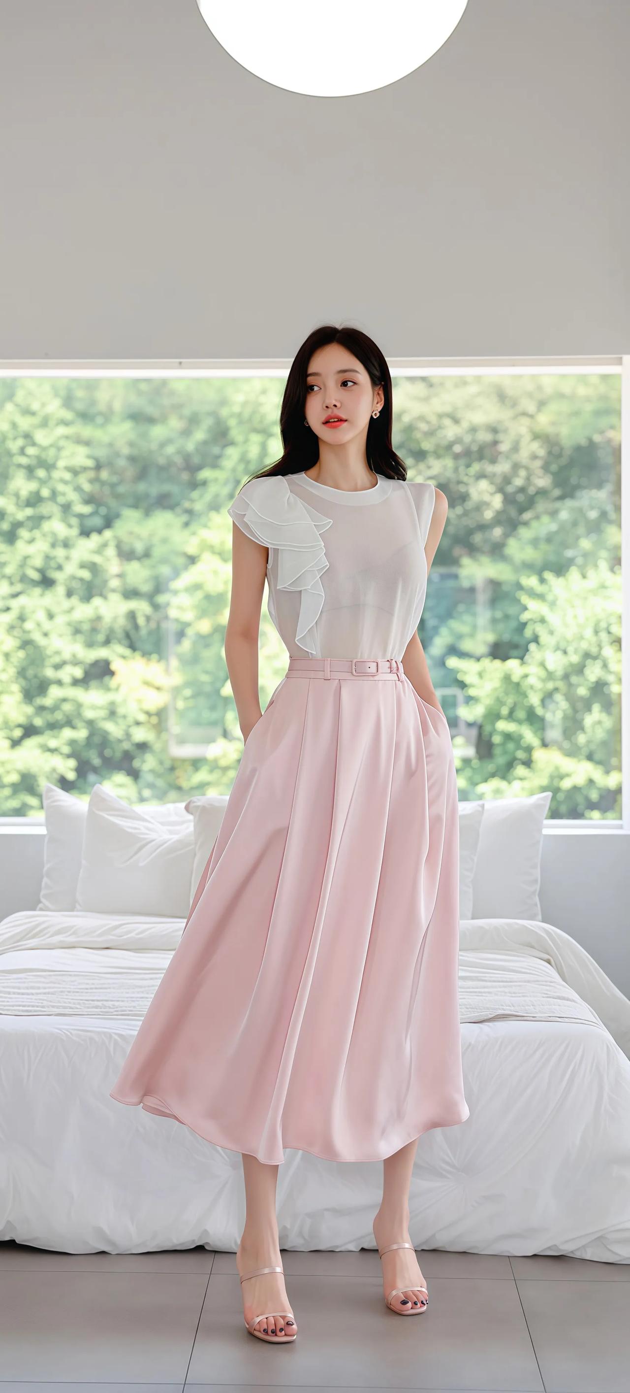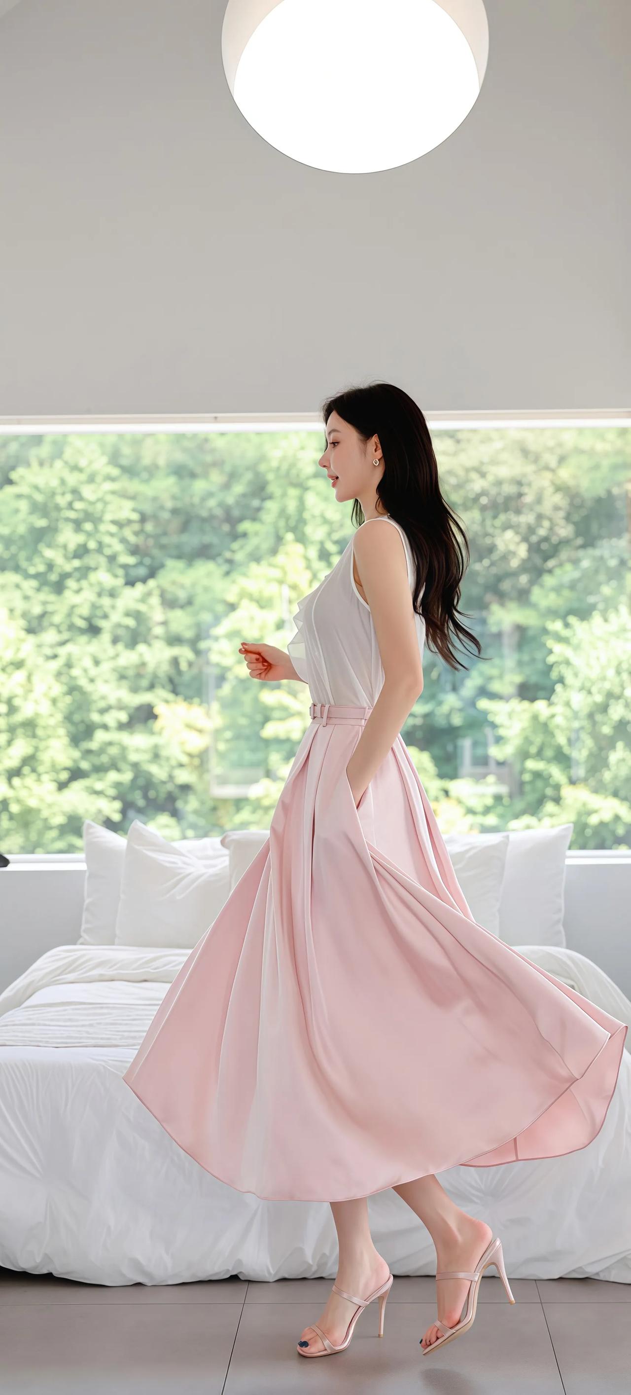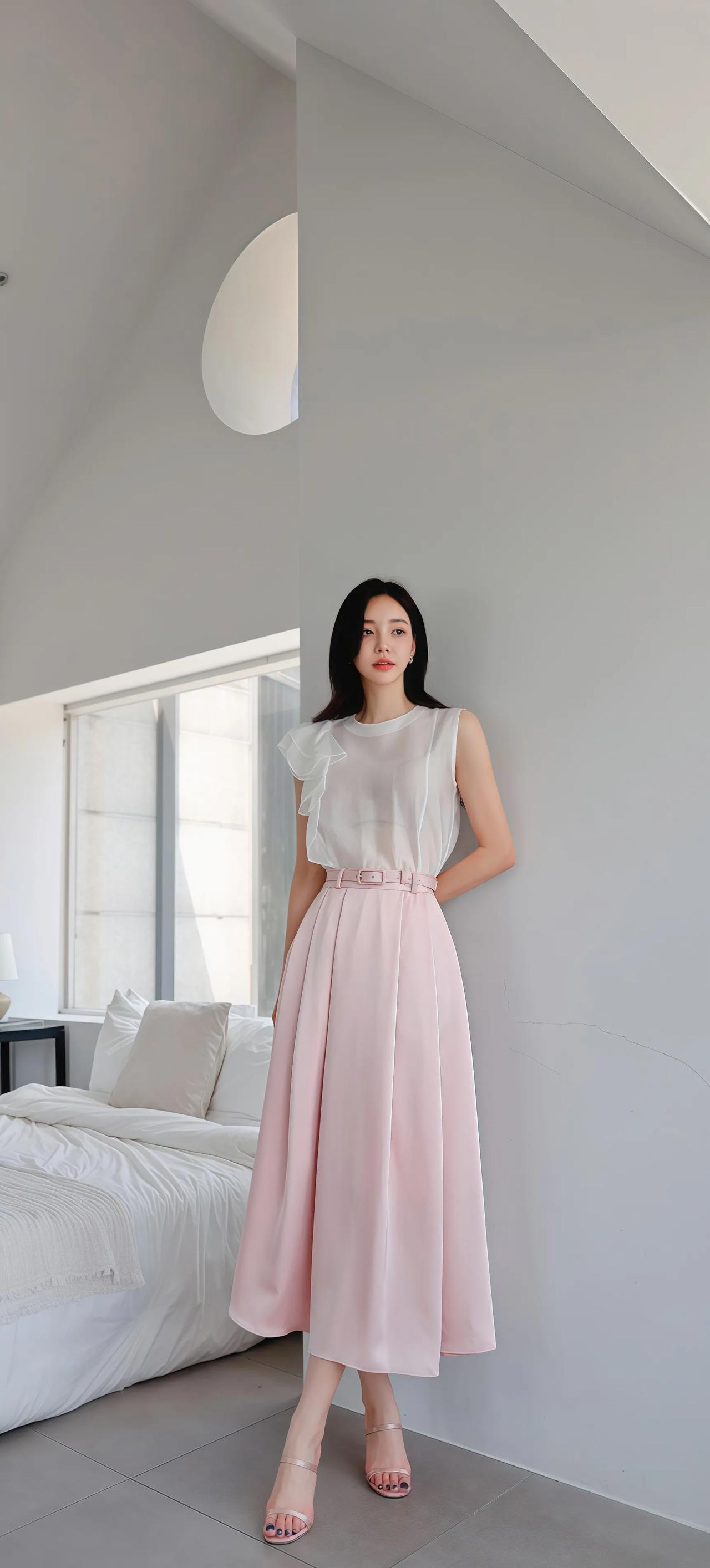 清新夏日穿搭,粉色裙摆飘逸,简约优雅,尽显女性魅力!🌸💃