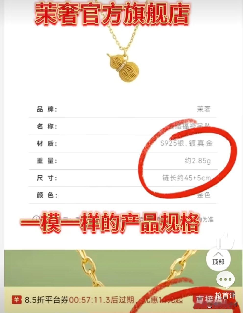 蛋蛋销售的纯银吊坠比旗舰店还贵了20! 蛋蛋直播间销售的99元腰缠万贯925纯银吊坠,比该品牌旗舰店还贵了20元,一模一样的的产品规格! 这不知道买贵包赔不!