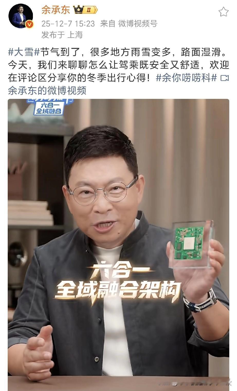 要不是余承东说出来,估计大家还蒙在鼓里,原来已经提前30多年华为部署造车技术,凭借软硬星云等全栈自研的能力,让底盘各个系统实现了从各自为战到统一作战,恐怖如斯啊! 是我肤浅了,远远低估了余总造车的决心,弯道超车,汽车智能化时代,余总已经是断崖式领先,鸿蒙智行超级小脑,又是业界独创了六合一的全域融合架构,它把车身电机、制动、转向、悬架以及热管理各个系统统一进行调度和管理,它能在0.01秒内同时调度多个系统,即使在冰雪和湿滑的路面上,也能够快速稳定车身,保障驾驶安全。遇到一些坑洼的路面,超级小脑在0.01秒内自动调节悬架,有效降低冲击,缓解了颠簸。 这完全是谁的面子也不给了,友商这回是笑不出来了,怪不得尊界S800成了国产豪华汽车新标杆,鸿蒙智行达成双百万里程碑:鸿蒙智行全系销量破百万! 尊界S800百万级豪车交付破万!打败余总的只有他自己,这句话的含金量还在上升! 你们怎么看?