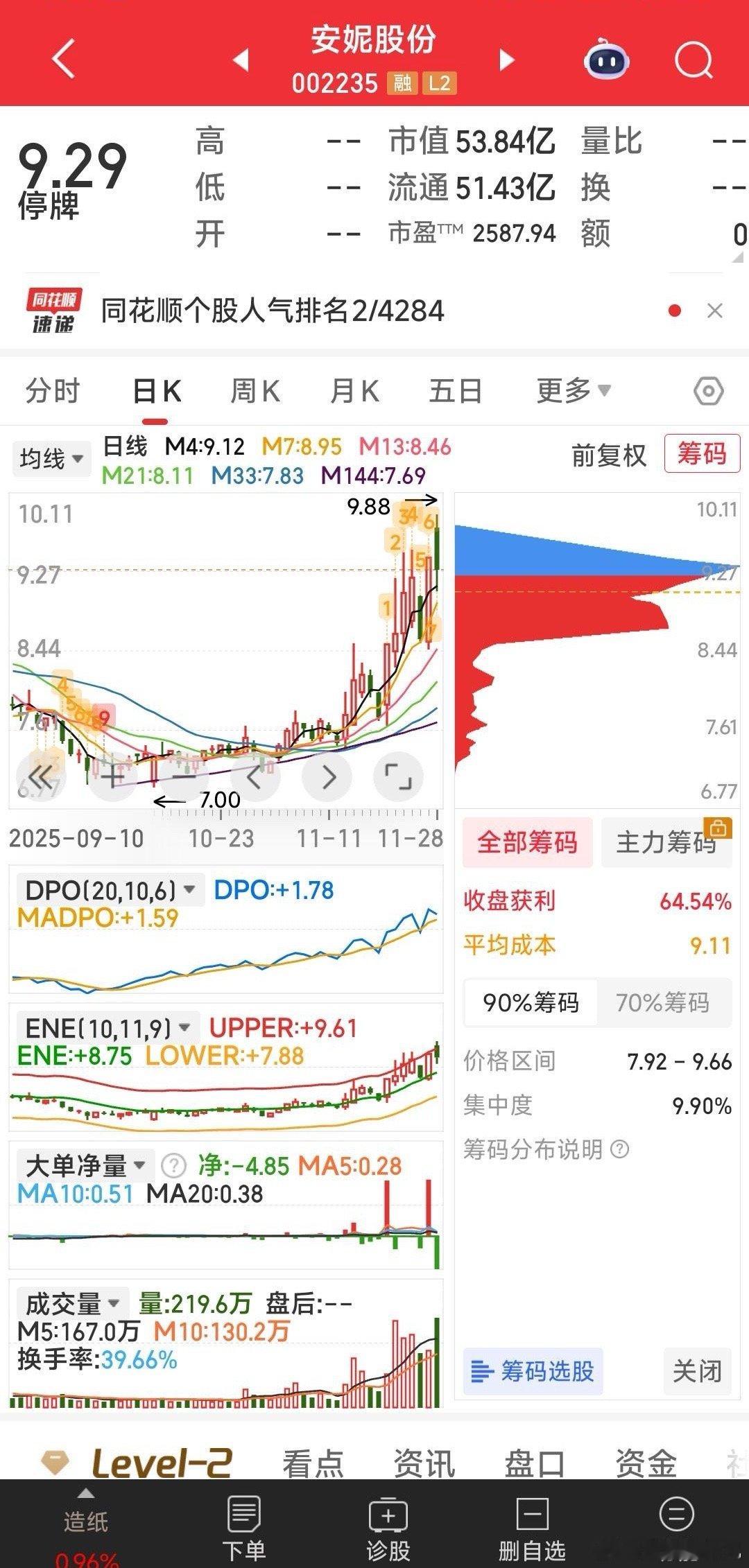 目前手中四票:四川金顶,高乐股份,初灵信息,达华智能。刚才出了巨轮智能,又6.2