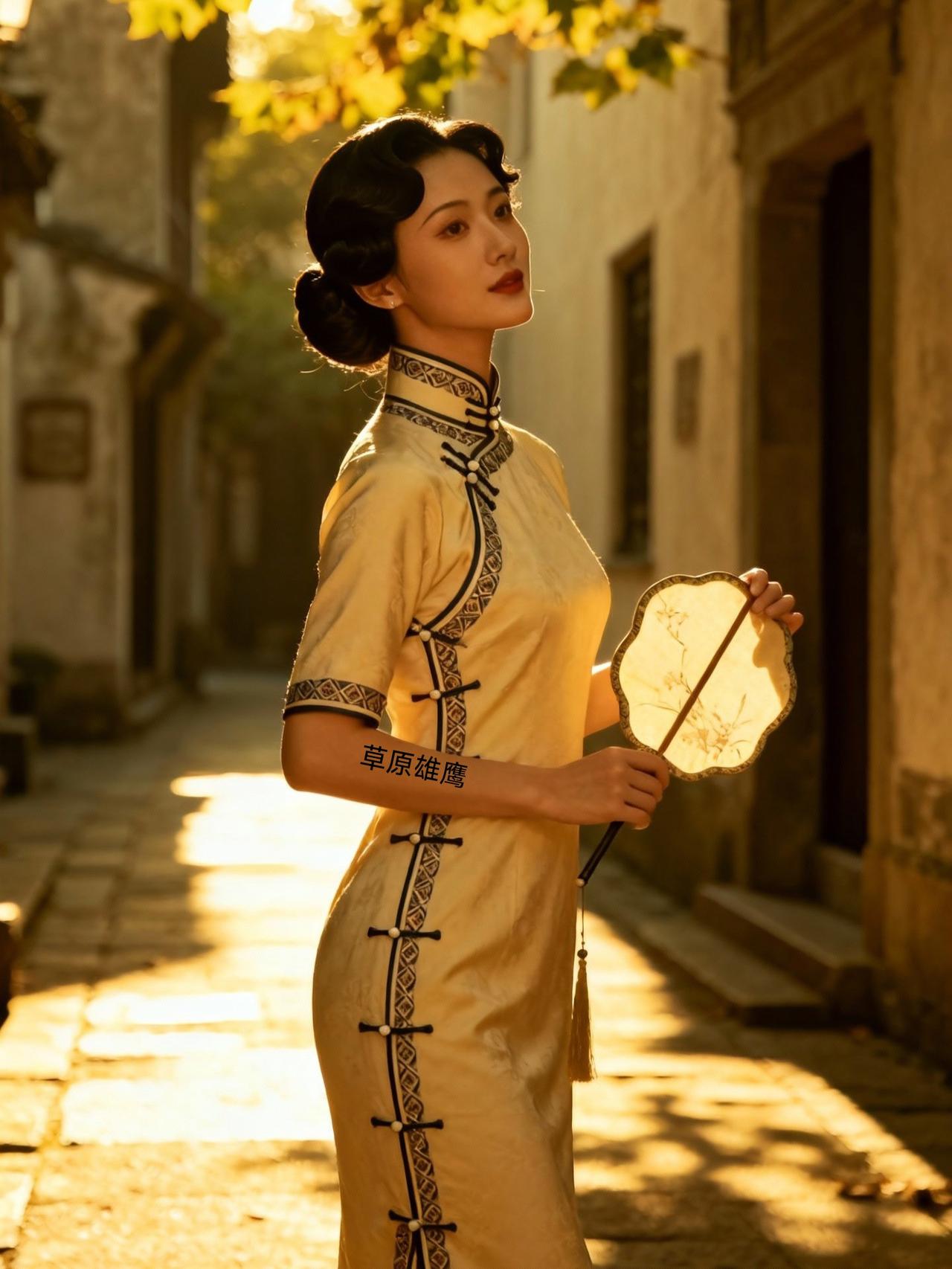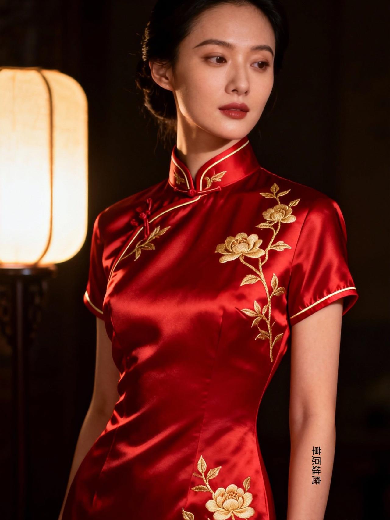 《旗袍不语,却道尽万种风情》 锦缎裁云,盘扣锁月 一寸针脚缝进千年婉约 立领挺括如远山含黛 斜襟流转似流水映荷 丝绒暗绣梅影横斜 真丝轻笼烟雨朦胧 袖摆扫过青石巷陌 暗香漫过时光褶皱 收腰束住江南的柔 开衩露着东方的羞 步履间摇落星子几颗 回眸时撞碎春风一脉 不借胭脂,不慕繁华 只用经纬织就风雅 每一道纹路都是无声的诗 每一寸衣袂都藏着岁月的画 于沉默处,绽放万种风华 旗袍风上衣 气质盘扣 轻奢旗袍裙 旗袍立领裙 盘扣丝绒裙 盘扣开叉礼服 高贵春秋旗袍