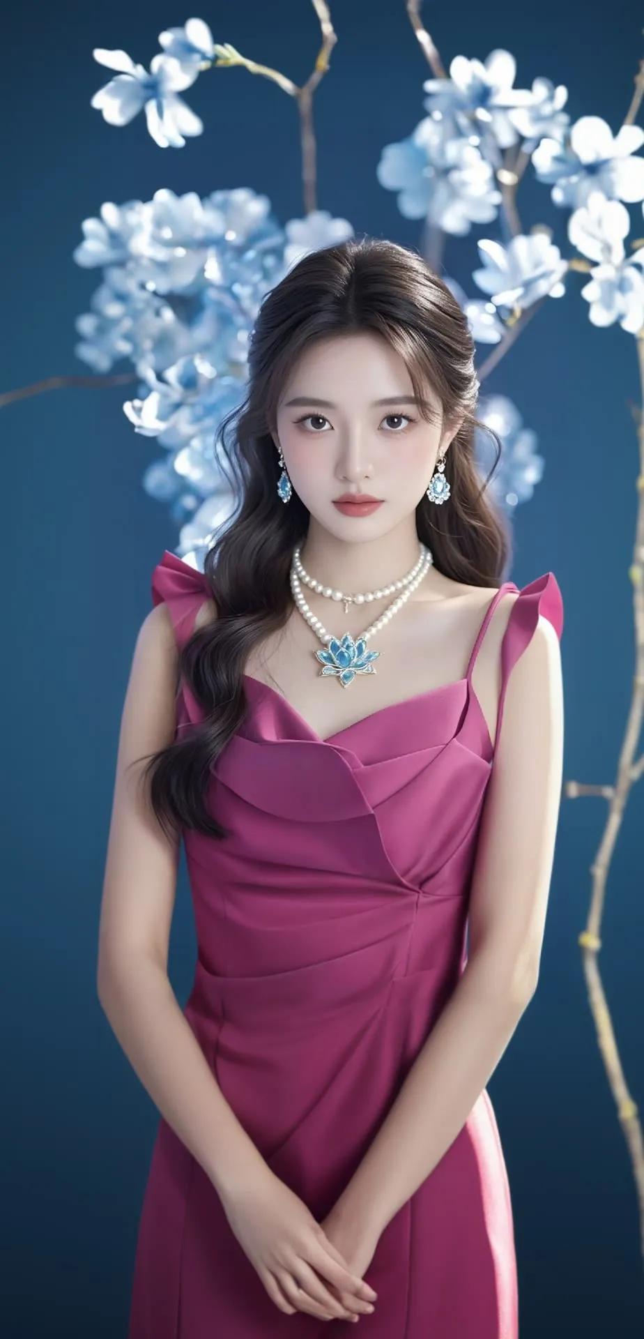 温柔甜美的粉色花衬衫,搭配珍珠项链和耳环,散发着优雅的气质。