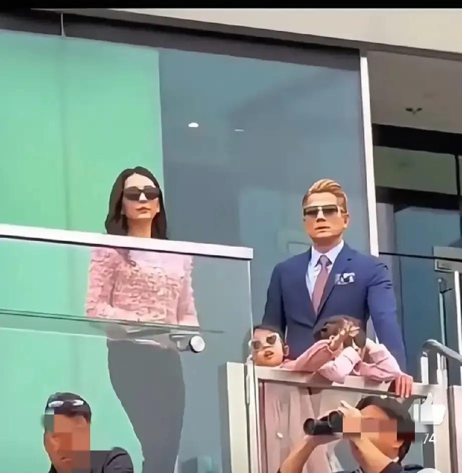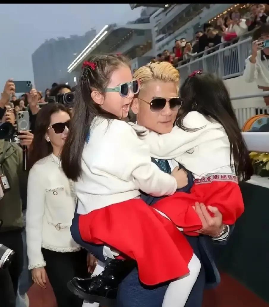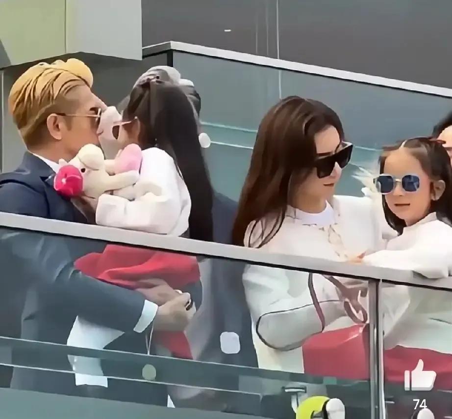 郭富城抱着小女儿走红毯,方媛牵着大女儿跟在后面,一家四口整整齐齐出现在《内幕》首