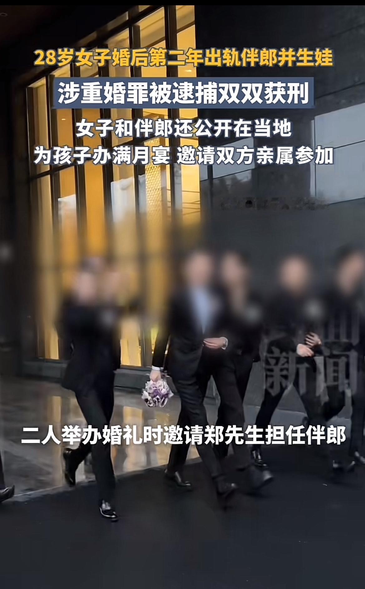 陕西柞水县这事儿,简直震碎三观!28岁的何女士2019年和程先生结婚,婚礼请了郑先生当伴郎。婚后程先生为养家常年打工,结果第二年何女士就和郑先生搞到一起,还以夫妻名义生活。2022年底生了个男婴,郑先生还在医院以配偶身份签字。 更离谱的是,2023年2月他们公开办满月宴,邀请亲属参加,完全不把程先生当回事。好在善恶有报,今年6月两人因重婚罪被逮捕,法院审理后判决他们获刑。这真是给那些不尊重婚姻的人敲响了警钟,婚姻不是儿戏,出轨还如此嚣张,就该受到法律制裁!