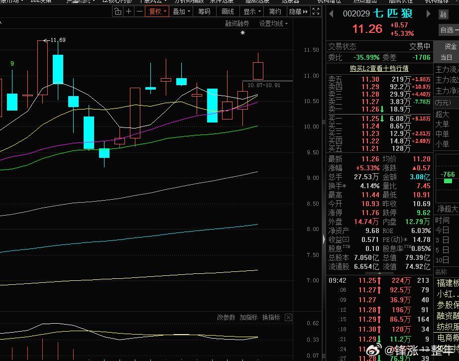 喜报:上周的七匹狼震荡两三天后,今天高开高走像是要突破,恭喜小伙伴了,也是大