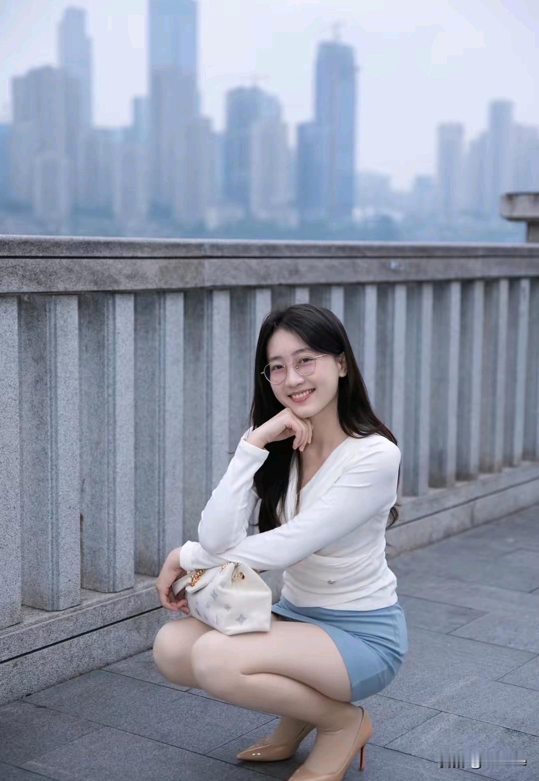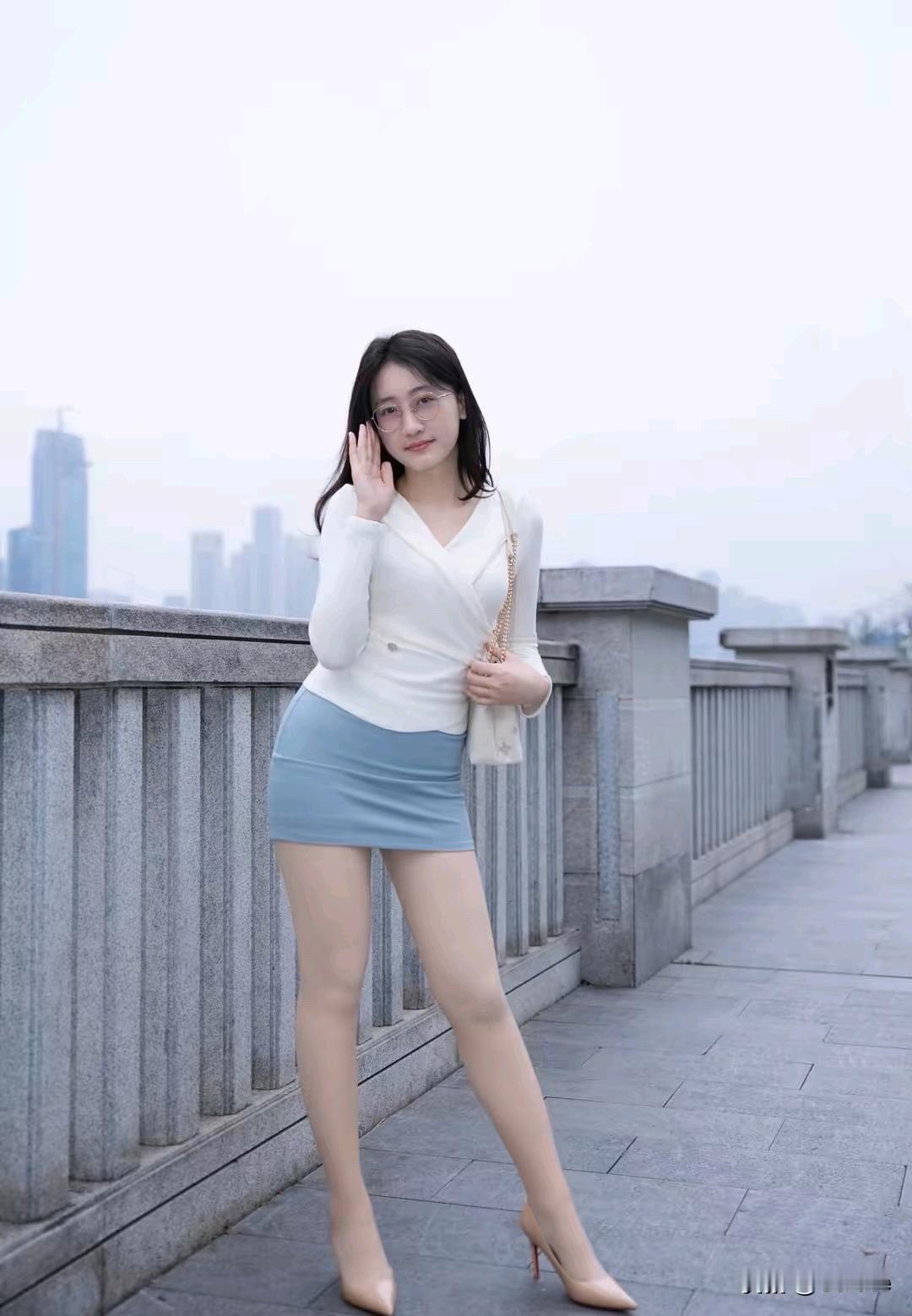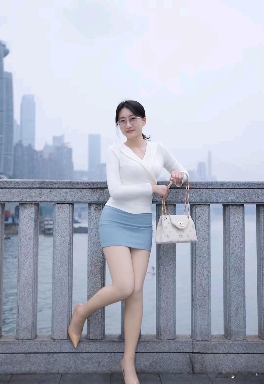 都市时尚少女,优雅倚栏,手提包点缀,尽显都市魅力。