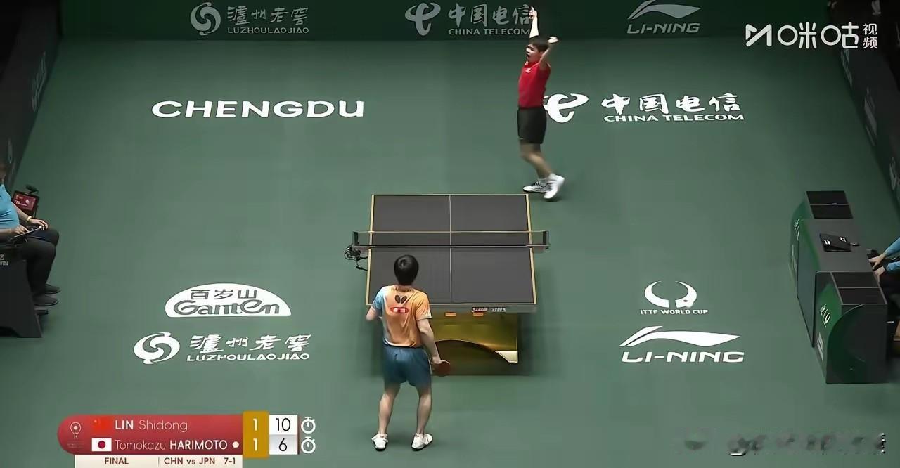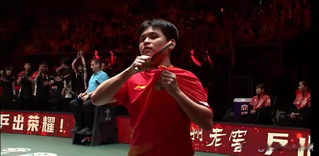 破防!林诗栋一举动感动全网! 成都混团世界杯决赛夜,20岁小将林诗栋的一记制胜球,让四川省体育馆彻底沸腾!面对1胜5负的交锋劣势,他首局6-11告负后强势翻盘,以11-5、11-6连扳两局,2-1逆转击败张本智和,为国乒锁定三连冠。 胜利瞬间,林诗栋振臂怒吼,深情亲吻胸前国旗,又郑重抓起球衣上的五星国旗向全场展示。这一举动直击人心,看台上王励勤主席起身喝彩,教练席与队友们相拥欢呼。 “没让国家和球队失望”,林诗栋的赛后感言朴实真挚。他用逆转诠释拼搏,用亲吻国旗彰显家国情怀,这滚烫的热爱,正是国乒精神最动人的传承!