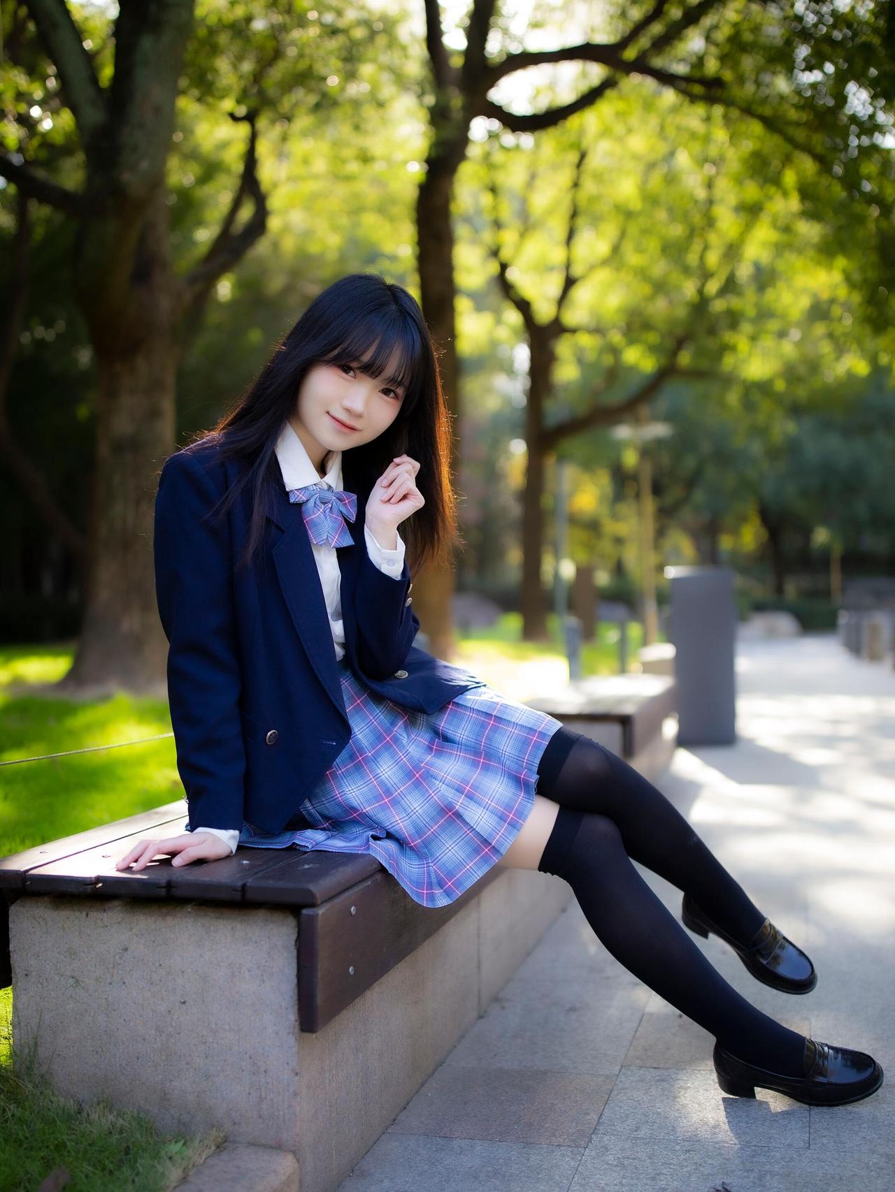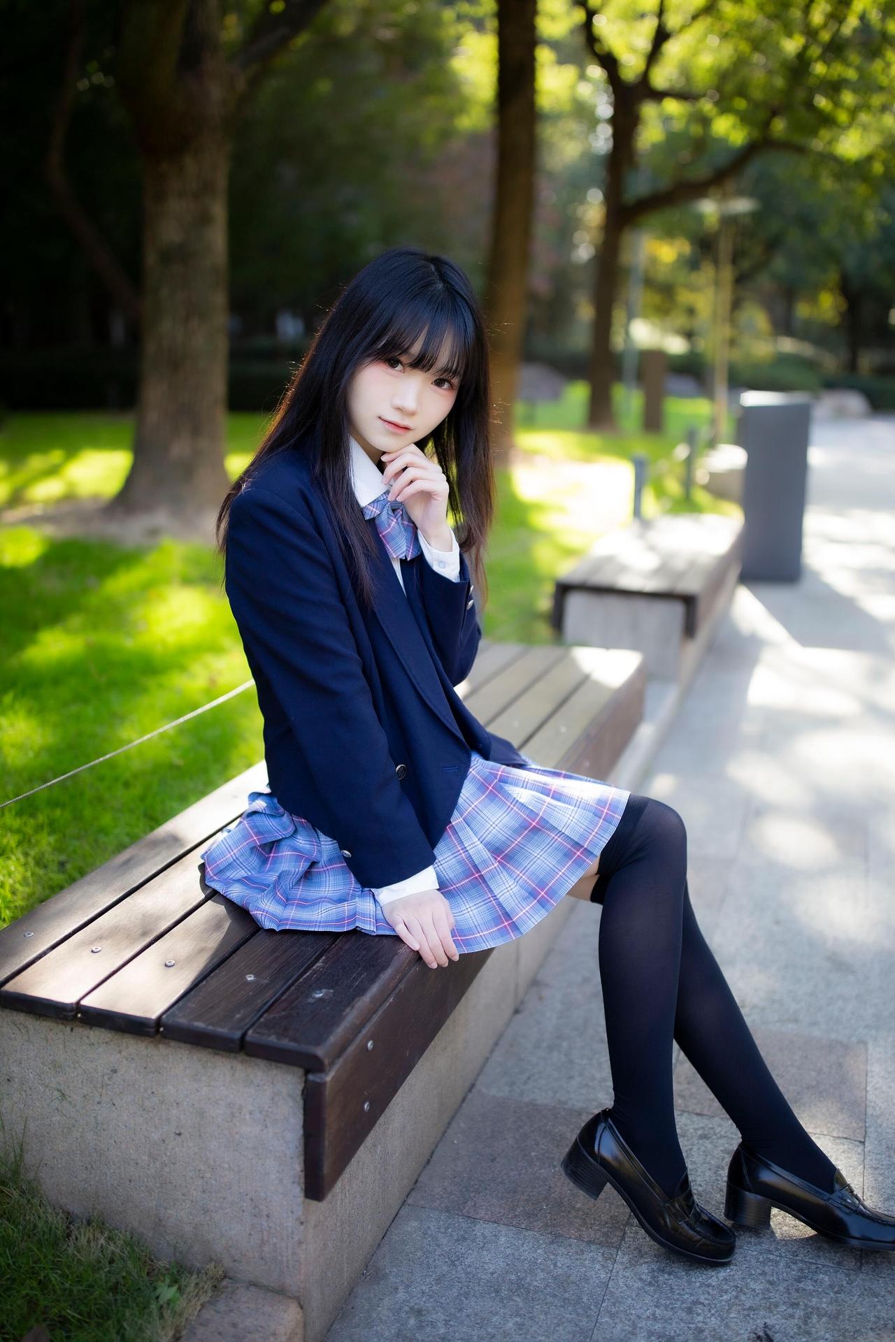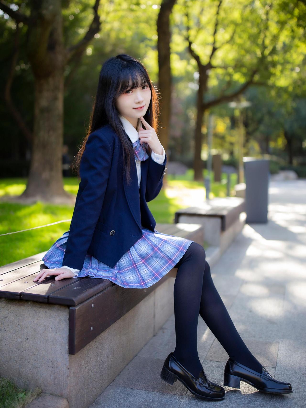 校园OOTD|深蓝西装+蓝格裙,初恋感拿捏了✨