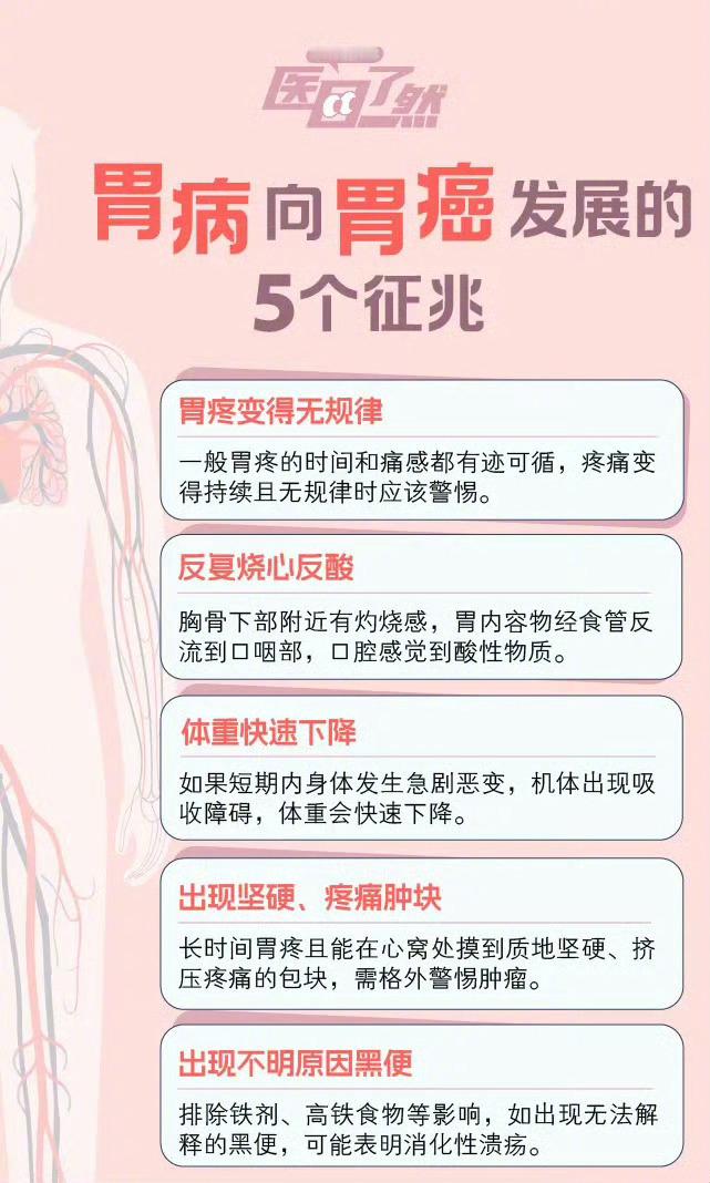 硬核研究所 【胃病向胃癌转变的5个危险信号】26岁确诊胃癌前身体发出的信号当代人的胃大多有各种各样的不舒服,胃疼、反酸、胃酸、胃胀……胃部不适时,有的人忍忍就过去了,然而有些被忽视的疼痛,可能是胃病向胃癌转化的征兆。戳图,看看受伤的胃长什么样↓↓
