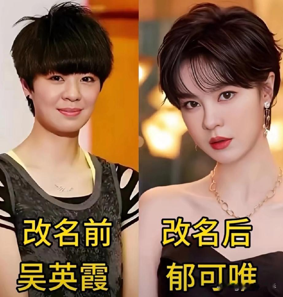 娱乐圈改名那些事儿,有的改一字星途大不同,真应了那句“人靠衣装,名靠星运”? 先说郁可唯,原名叫吴英霞。这名字一对比,感觉风格差得不是一星半点。“吴英霞”听着挺朴实,像邻家大姐,但放在流行乐坛里,辨识度可能没那么高。改成“郁可唯”之后,文艺气息、独特感一下子就上来了,跟她那些深情婉转的歌曲气质也更搭调。她是从选秀《快乐女声》出来的,唱功了得,《时间煮雨》、《知否知否》这些歌,那是真的火 再看弦子,原名叫张弦子。她这改名严格说算“精简”,用了本名的一部分,反倒更简洁好记。当年一首《不得不爱》和潘玮柏唱得那是街知巷闻,青春记忆里少不了这一笔。