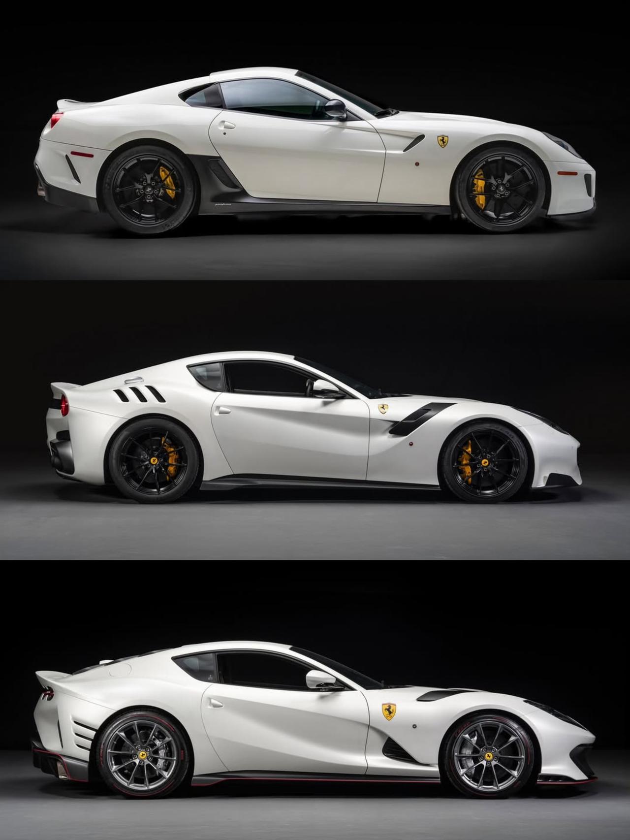 法拉利只使用了三次GTO名称。 ⚪️⚪️⚪️ Ferrari 599 GTO(178479) 2010年前,这个名字只出现在 250 GTO 和 288 GTO上,当 599 GTO 面世后,它承载了这段历史,并开始成为法拉利阵容中最重要的街车之一。 外观方面,这台车采用了 Bianco Avus 油漆,除了它,法拉利至少还有25种白色车漆,价格也各不相同。带有 Blu Pozzi 赛车条纹,车身裸露的碳纤维扩散器,黑色十辐轮毂和黄色卡钳,一个罕见而引人注目的配置。 这台车深深地借鉴了 599XX 的程序,重新加装的空气动力学设计,带有 F1 Trac 的精致底盘,更快的换挡。以及源自Enzo的6.0升V12发动机,功率为661马力,转速为8,250转/分,它只需60毫秒即可移动,3.1秒内即可达到100公里/小时。在Around Fiorano(菲奥拉诺),它比恩佐快一秒。 内饰方面,黑色皮革上的白色缝线与碳纤维和 Alcantara 结合,融合了公路车的感觉和赛道机器的设计,表显只有8946公里。一款真正的V12法拉利,不辜负GTO的名字,也是当时最严肃的前置引擎性能汽车之一。 法拉利巅峰前置发动机。 ⚪️⚪️⚪️ Ferrari F12 TDF 全球限量799台,这辆车重振了法拉利历史上最传奇的名字之一,并将自然吸气的V12体验推向了最极端的现代形式。 这个例子为 Atelier 规格,外观方面,这台车采用了 Bianco Italia Opaco,哑光碳纤维,内部配有炭黑色 Alcantara,车身各处点缀着黄色装饰。在科威特新交付,每年逗由同一官方经销商维护,截至目录登记时,行驶里程仅为10322公里。 在发布时,它成为了除了混合动力的 LaFerrari 之外,是有史以来最强大的自然吸气法拉利。凭借6.3升V12发动机的769马力以及大幅减轻重量,F12 TDF 成为有史以来绕过菲奥拉诺最快的公路车之一。 599 GTO 和 F12 TDF 的继承者。 ⚪️⚪️⚪️ Ferrari 812 Competizione 812 Competizione 是法拉利 V12 血统前置引擎的顶峰制作。仅有生产了999两样,它携带了直接来自法拉利最集中的赛道研发项项目最顶端的技术。 外观方面,这台车采用了 Bianco Italia Opaco 油漆,车身侧裙选有 Rosso Corsa Opaco 描线,选有抛光轮毂、铝色刹车卡钳。内饰方面,Nero Alcantara 复古赛车座椅,部分细节使用了 Rosso 进行点缀。 引擎盖下是法拉利有史以来最快的旋转内燃机。搭载一台6.5升 V12 自吸发动机,转速到9500转,产生 819马力,它在2.85秒内达到100公里每小时,表显只有 486公里。