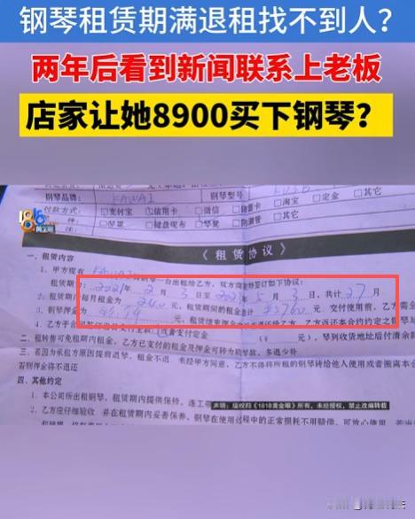 浙江杭州,王女士花5760元给女儿租了架钢琴,租期两年,押金9000元,女儿不喜