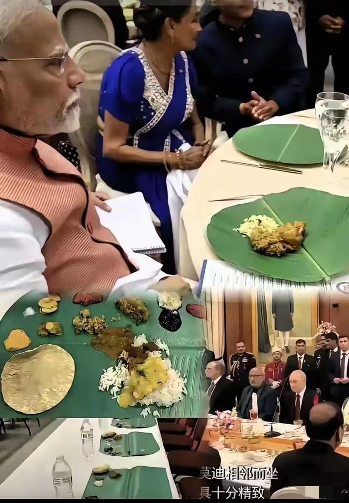 普京估计以后不会去印度了?印度太掉链子了 普京时隔四年再次访问印度,印度非常重视普京的到访,全国上下都比较认真规划了这次迎接仪式,莫迪亲自到机场迎接印度,现场进行了高规格接待。 印度准备了印度的国宴招待普京,印度国宴端上桌,一张芭蕉叶上面放了多种食物,但食物颜色让人不忍下嘴,顿时一点食欲也没了,而且还要用手抓,俄方人员看了直摇头,莫迪自豪的介绍着国宴。 印度就不能搞点俄罗斯烤肉串,大列巴,馅饼,布林饼等再配点伏尔加,俄方人员绝对开心。 结果印度搞这种晚宴,不是给俄方人员添堵吗?普京下次再也不来了。 印度要多学学中方接待马克龙的用心,马克龙临走前还要来中国多待几天。 印度还要多换位思考,不要站在自己的角度。俄罗斯总统普京