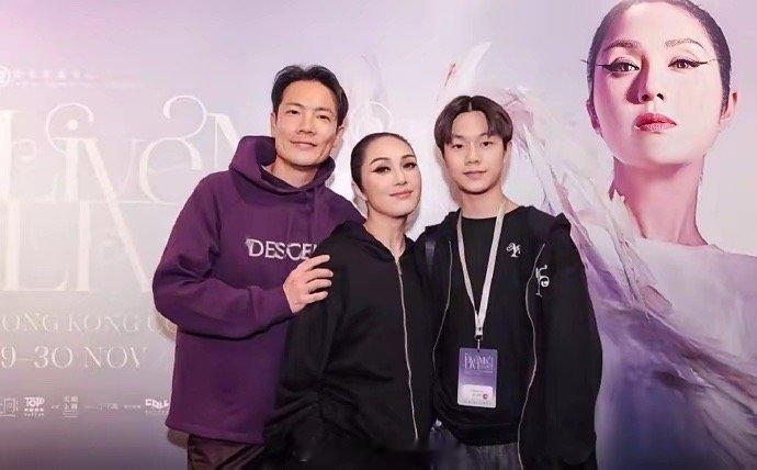 杨千嬅老公丁子高带儿子支持妈妈演唱会,13岁的丁进诺发育迅猛,身高已经超过妈妈,跟爸爸也只是差半个头的距离。父子俩长得十分相似,不过儿子则是秀气一点。